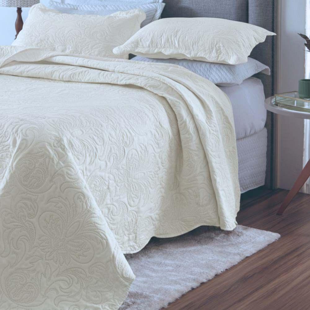 Kit Cobre Leito Colcha Basic King 3 Peças Dupla Face Liso Classic - Marfim - 100% Poliéster