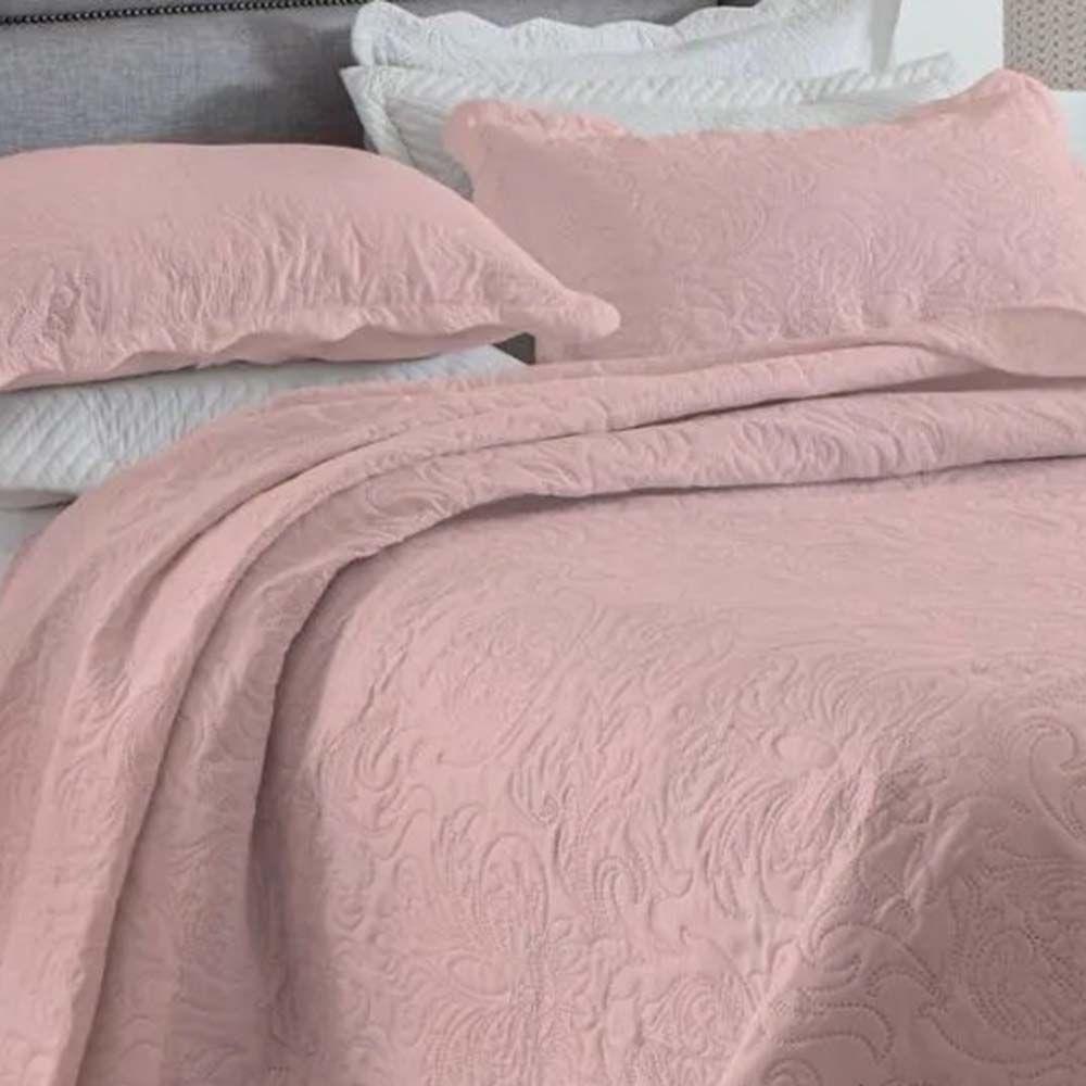 Kit Cobre Leito Colcha Basic King 3 Peças Dupla Face Liso Classic - Rose Claro - 100% Poliéster