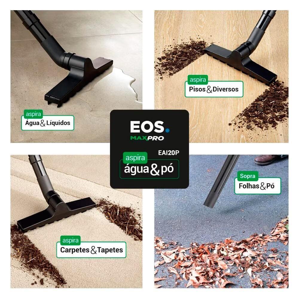 Aspirador De água E Pó 20l Inox 1650w Max Pro Eai20i 220v - Eos 220vMUITO IMPORTANTE:-- CONFERIR PRODUTOS NO ATO DO . NÃO ACEITAR PRODUTOS COM EMBALAGEM VIOLADA (, RASGADO, ABERTO, , ETC), A RECUSA DEVE SER FEITA NO ATO.Aspirador De Água E Pó 20L Inox 1650W Max Pro EAI20I 220V - EOSMais do que apenas aspirar: A função dupla do produto lhe permitirá deixar reluzentes chãos, tapetes e estofados sem nenhum esforço. Enquanto às tarefas de jardinagem, você poderá soprar as folhas, a areia e os resíduos.Detalhes do produto:- ECONÔMICO: Economia de energia que ajuda o meio ambiente e o seu bolso!- LIMPEZA EFICIENTE: Potência para deixar o ambiente brilhando- MAIS CAPACIDADE: Tanque interno de 20 litros- SOPRADOR: Com função soprador para folhas, colchões e outros- MAIS ECONOMIA: Saco coletor reutilizável- 3 EM 1: Aspira pó, água e tem função sopradorCaracterísticas:- Aspira Sólidos e líquidos- Saco de tecido – reduz a sujeira que retorna ao ambiente- Econômico – com saco coletor reutilizável- Acompanha bocais diversos- 3 em 1 – Aspira sólidos, líquidos e função soprador- Alta potência- Grande de armazenamento interno- Porta acessórios- Permite retirar folhas, encher balões e colchões infláveisFicha Técnica:- Voltagem: 220V/60Hz- Alimentação: elétrico- Modelo: EAI20I- Código Salvador Comercial: 014016- Classificação: Aspirador- Capacidade do Reservatório (L): 20 L- Garantia: 12 meses- Potência (W): 1650 W- Consumo (kWh): 16,7kWh/mês- Amperagem (A): 10 A- Potência de sucção: 16,5 kPa (165 mBar)- Comprimento do fio de energia elétrica: 3 m- Diâmetro da mangueira: 3,5 cm ØAcessórios inclusos:- 1 mangueira de 1,5m- 3 tubos plásticos de 345mm- 1 bocal fino para limpeza de sofás e bancos- 1 saco coletor de tecido- 1 adaptador escova para chão- 1 filtro esponja 4 rodas.Dimensões:- Aspirador: 43 cm A x 45 cm L x 47 cm P- Embalagem: 47 cm A x 33 cm L x 33 cm P- Peso Bruto: 5,6kgPerguntas frequentes:- Qual o nível de ruído em decibéis?Nível de ruído em decibéis: 96d- Quantos metros tem o cabo elétrico?O cabo de energia possui 3 metros.- Qual o diâmetro da mangueiraMangueira com diâmetro de 3,5 cm Ø.- Quantas funções possui este aspirador?Possui 3, aspira sólidos, líquidos e função soprador- Seu motor é por indução?Isso mesmo, motor de indução/com escova.- Seu filtro é permanente?Sim, permanente e reutilizável.--- Tags ---Aspirador de Água e Pó, Aspirador Multifuncional, Capacidade de 20L, Potência de 1650W, Modelo Max Pro, Design em Inox, Versatilidade, Limpeza Eficiente, Remoção de Água e Pó, Alta Performance, Reservatório Amplo, Durabilidade, Resistência, Praticidade, Fácil Manuseio, Tecnologia Avançada, Marca EOS, Energia Elétrica 220V, Limpeza Doméstica, Limpeza , Qualidade Garantida, Eficácia na Limpeza, Aspiração Potente, Atração de Poeira, Sucção de Líquidos, Ferramenta de Limpeza, Casa Limpa, Economia de Tempo, Higiene, Conveniência, Design Moderno. Fabricante: EOS | Cor: Prateado | Capacidade Total do Reservatório: 20 | Produto: Aspirador de pó | Alimentação: Elétrica | Voltagem: 220V | Selecione: Aspirador de pó Voltagem: 220V