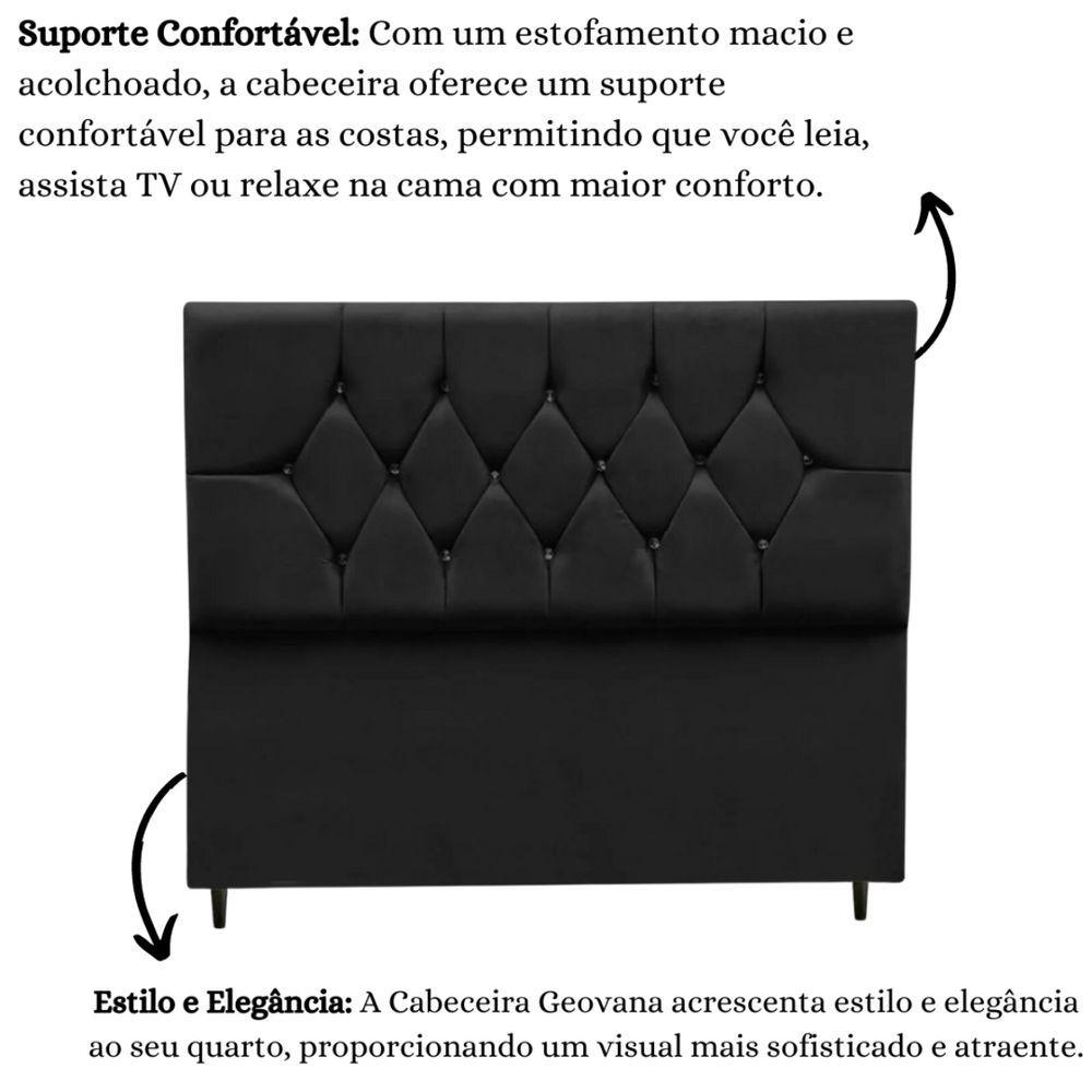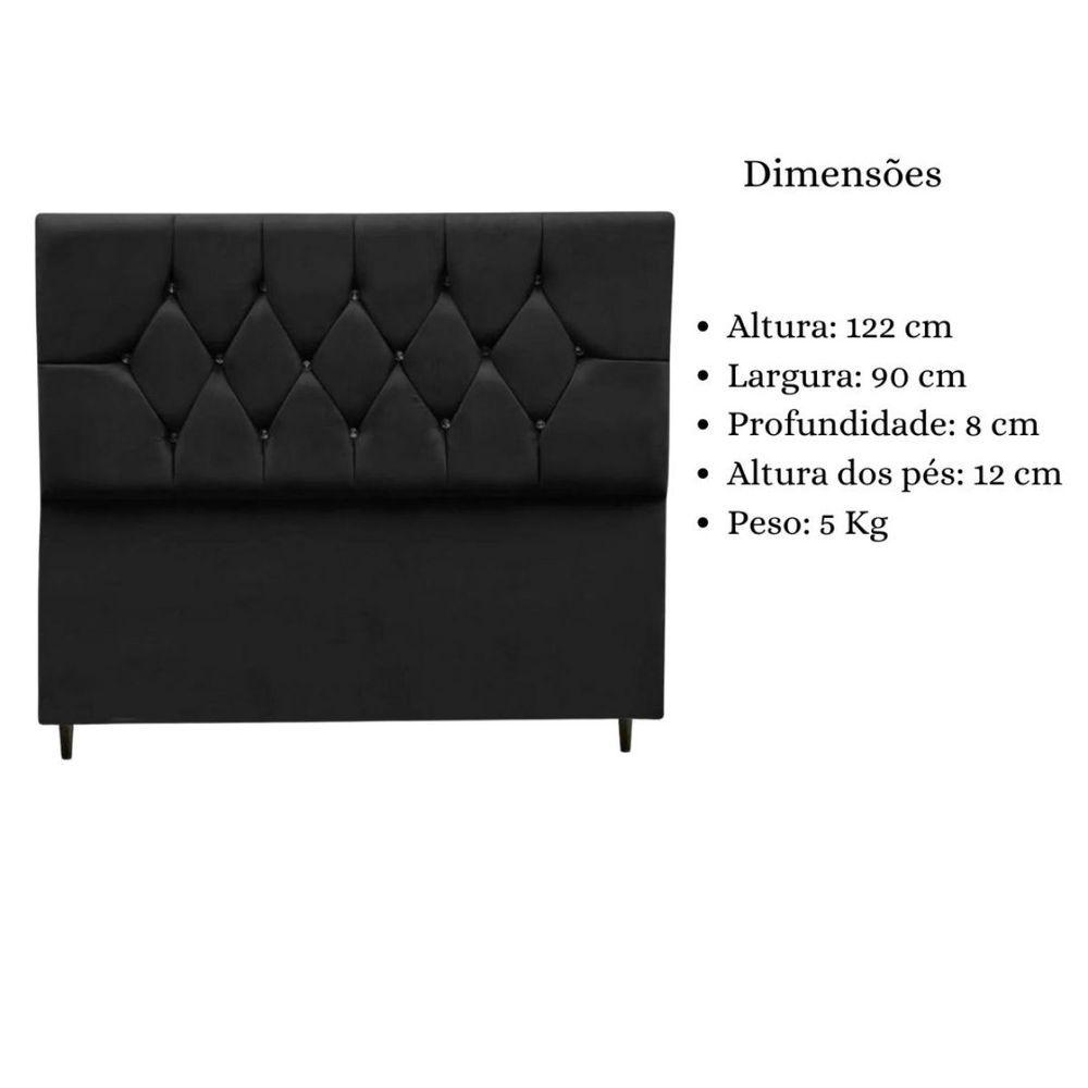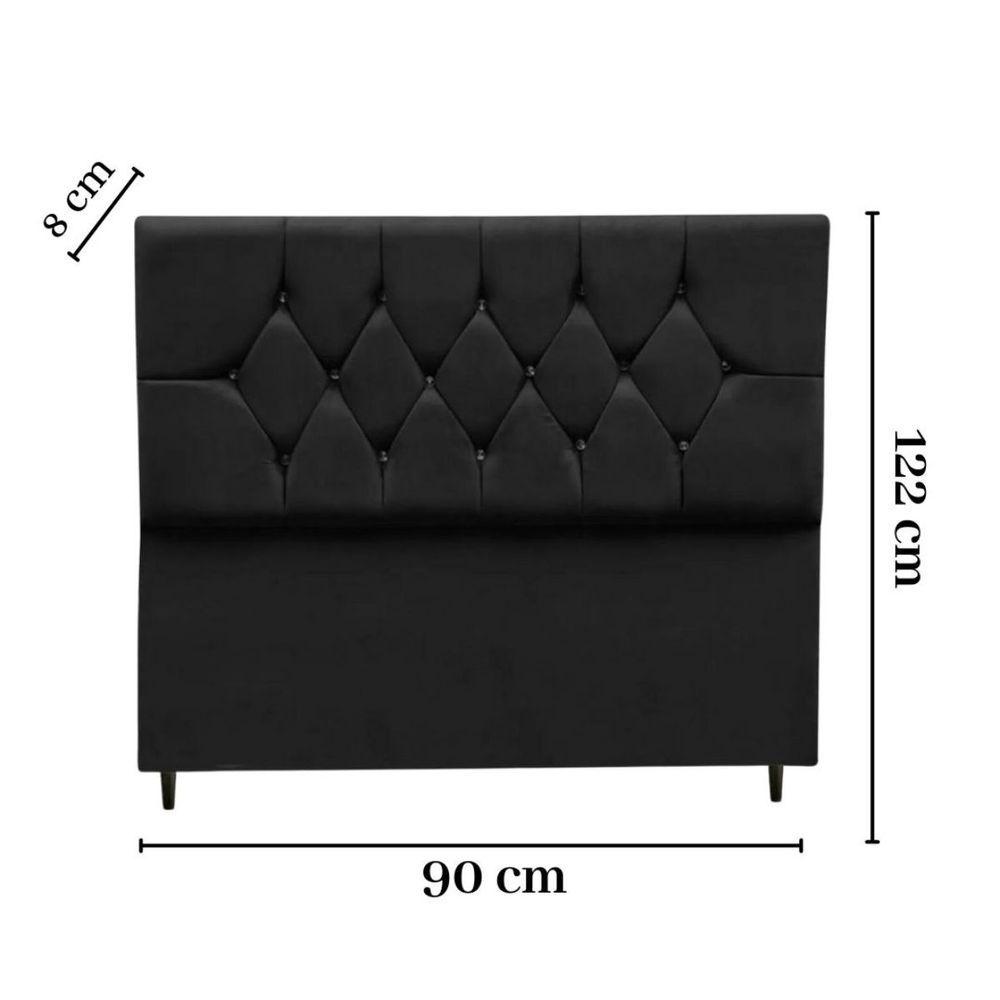 Cabeceira Box Estofada Solteiro 90 Cm Geovana Suede Preto