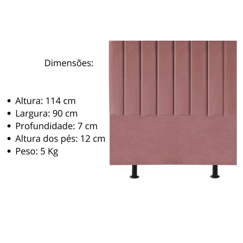 Cabeceira Estofada Cama Solteiro 90 Cm Sophia Carla Suede Cor:rosêSão os detalhes que transformam nossa decoração, não é mesmo? E um belo exemplo disso é a Cabeceira Estofada Cama Box Solteiro Carla que possui um design único e detalhes que garantem um visual mais convidativo ao quarto. Ela é uma ótima alternativa não só para acompanhar sua cama, como também garantir que você tenha um apoio mais aconchegante para as costas quando estiver sentado.Revestida em suede e fabricada em madeira eucalipto de alta qualidade, é o acessório perfeito para valorizar a decoração do seu quarto!Compre já e deixe seu quarto ainda mais aconchegante com essa linda Cabeceira!Dimensões:Altura: 114 cmLargura: 90 cmProfundidade: 7 cmAltura dos pés: 12 cmPeso: 5 KgEspecificações do Produto:Estrutura: Madeira Eucalipto de alta qualidadeTecido: SuedeMaterial dos pés: PlásticoNão acompanha o kit frameOs parafusos para fixação do frame e os pés serão enviados dentro do forro, na parte de trás da cabeceiraMontagem: O produto vai montado, necessitando apenas rosquear os pés (2)Instruções de Limpeza: Utilizar um pano limpo e levemente úmidoVocê irá receber: 01 volumeObservações Relevantes:- Produto para uso residencial em ambiente interno, não devendo ficar exposto diretamente ao sol, calor e umidades excessivas;- Pode haver alguma diferença de tonalidade entre a imagem e o produto real, por conta do tratamento de imagens, lote do tecido e a calibração de cores do seu monitor;- Para futuras compras, não garantimos a mesma tonalidade de cor, pois existe variação a cada lote do fabricante do tecido;- As imagens são meramente ilustrativas, não acompanham objetos de decoração e eletros;- Confira as dimensões do produto no momento da compra e certifique-se de que passará normalmente por escadas, elevadores, portas e corredores;Cabeceira para quarto individualMóvel estofado para cama boxDecoração de quarto com cabeceiraCabeceira de cama sem kit frameCabeceira com detalhes de montagemEstofamento premium para cabeceiraQuarto elegante com cabeceira CarlaOpções de cores para cabeceiraEstofado para cama box solteiroMobília de quarto com toque luxuosoCabeceira sem necessidade de ferramentasMelhore o ambiente com cabeceira estofadaCabeceira de qualidade para quartoDecore seu quarto com Cabeceira CarlaSuede de alta durabilidade para cabeceira