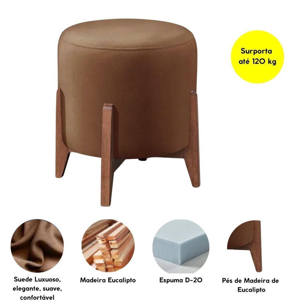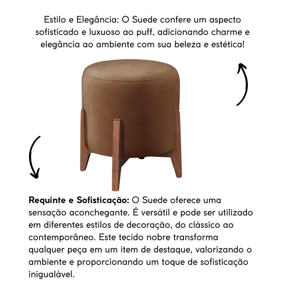 Puff Decorativo Redondo Sala De Estar Eloá Suede Cor:capuccinoO Puff Para Sala é a escolha ideal pra você que busca mais conforto e elegância para o seu ambiente! Esse Puff Decorativo possui um design único e versátil para compor diferentes espaços da sua casa, como sua sala de estar, quarto, escritório e recepção ou até para quando receber visitas e quiser um lugar extra para acomodar os amigos, é aquele item que consegue fazer toda a diferença nos momentos de descontração e receptividade.O Puff Redondo para sala de estar é revestido em tecido Suede, base em madeira eucalipto deixando os pés aparentes trazendo um toque de modernidade, é o móvel perfeito para valorizar a sua decoração.Garanta já o seu Puff Estofado moderno para quarto e ouse na sua utilização deixando seu ambiente ainda mais lindo!Dimensões:Altura: 43 cmLargura: 40 cmProfundidade: 40 cmAltura dos Pés: 11 cmPeso: 7 KgPeso Suportado: 120 KgEspecificações do Produto:Estrutura: Madeira EucaliptoDensidade da Espuma: Assento D-23Tecido: Suede.Material dos pés: Madeira Eucalipto.Montagem: O produto vai montado.Instruções de Limpeza: Utilizar um pano limpo e levemente úmido.Você irá receber: 01 volume.Observações Relevantes:Produto para uso residencial em ambiente interno, não devendo ficar exposto diretamente ao sol, calor e umidades excessivas.Pode haver alguma diferença de tonalidade entre a imagem e o produto real, por conta do tratamento de imagens e a calibração de cores do seu monitor.As imagens são meramente ilustrativas, não acompanham objetos de decoração e eletros.retrôsentarpequenoinfantilcouropersonalizadomadeiraacolchoadodobrávelescritóriocoloridoPequenoMinimalistaambientes externosquadradobaúgrandecamavarandaluxosustentável