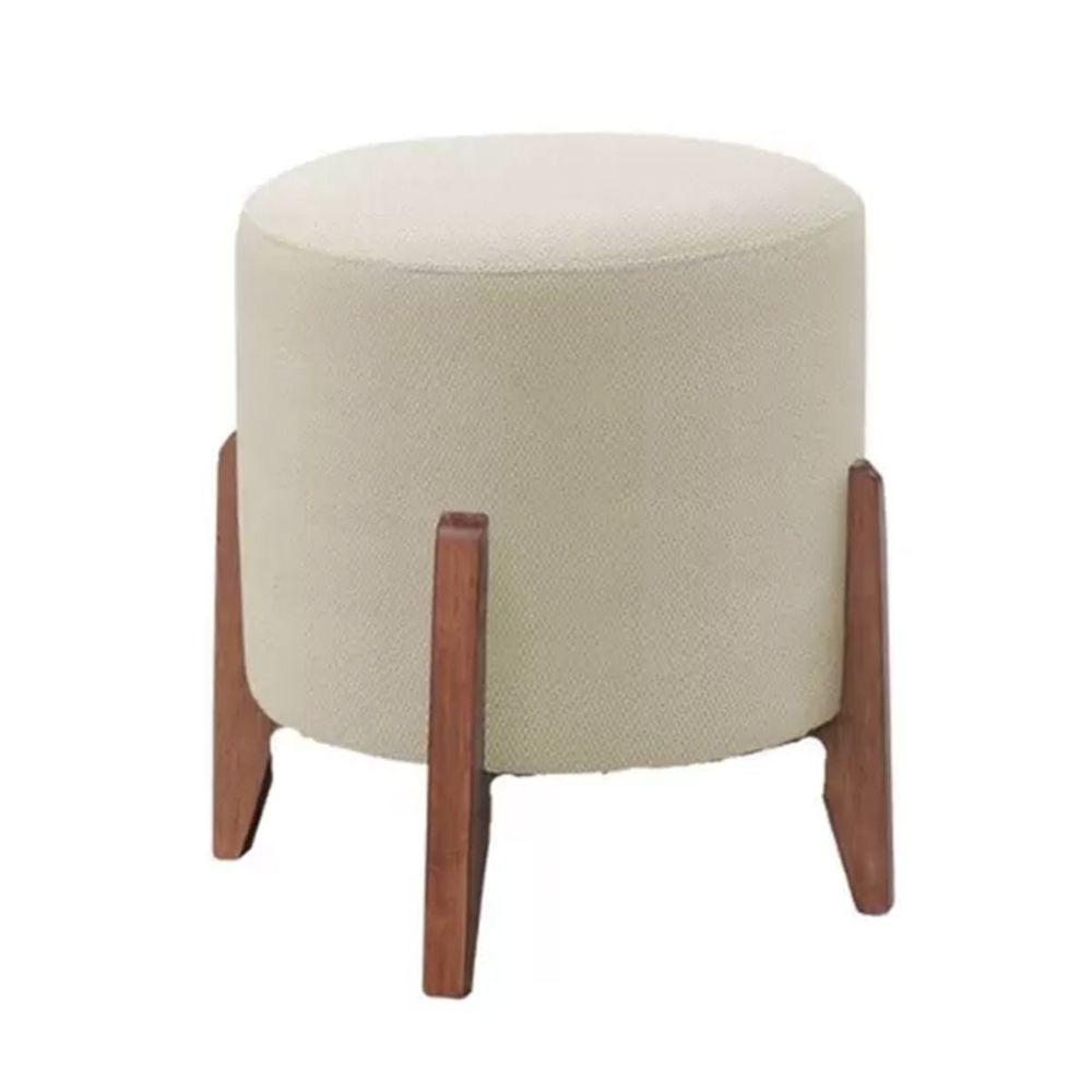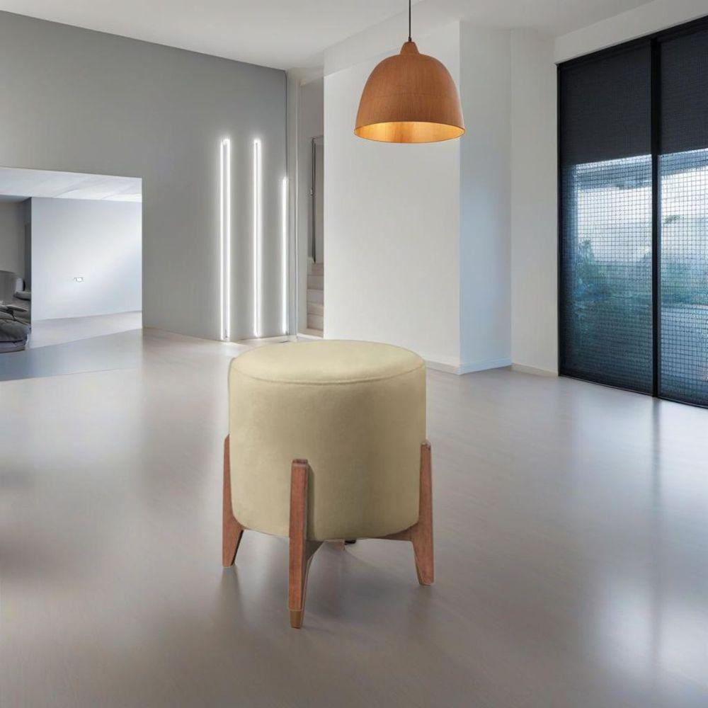 Puff Estofado Decorativo Redondo Eloá Corino Bege
