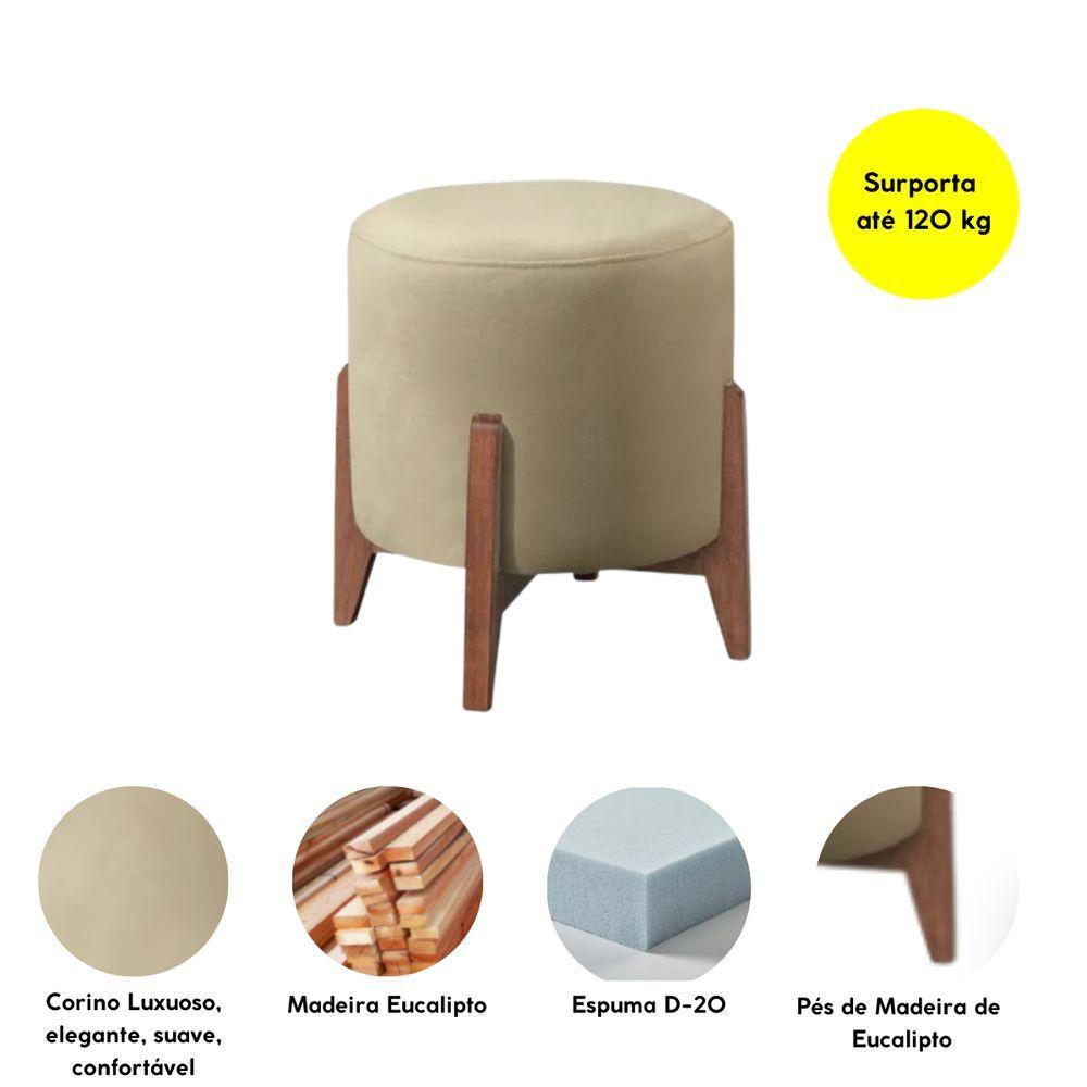Puff Estofado Decorativo Para Sala Redondo Eloá Corino Cor:begeO Puff Para Sala é a escolha ideal pra você que busca mais conforto e elegância para o seu ambiente! Esse Puff Decorativo possui um design único e versátil para compor diferentes espaços da sua casa, como sua sala de estar, quarto, escritório e recepção ou até para quando receber visitas e quiser um lugar extra para acomodar os amigos, é aquele item que consegue fazer toda a diferença nos momentos de descontração e receptividade.O Puff Redondo para sala de estar é revestido em tecido Corino, base em madeira eucalipto deixando os pés aparentes trazendo um toque de modernidade, é o móvel perfeito para valorizar a sua decoração.Garanta já o seu Puff Estofado moderno para quarto e ouse na sua utilização deixando seu ambiente ainda mais lindo!Dimensões:Altura: 43 cmLargura: 40 cmProfundidade: 40 cmAltura dos Pés: 11 cmPeso: 7 KgPeso Suportado: 120 KgEspecificações do Produto:Estrutura: Madeira EucaliptoDensidade da Espuma: Assento D-23Tecido: Corino.Material dos pés: Madeira Eucalipto.Montagem: O produto vai montado.Instruções de Limpeza: Utilizar um pano limpo e levemente úmido.Você irá receber: 01 volume.Observações Relevantes:Produto para uso residencial em ambiente interno, não devendo ficar exposto diretamente ao sol, calor e umidades excessivas.Pode haver alguma diferença de tonalidade entre a imagem e o produto real, por conta do tratamento de imagens e a calibração de cores do seu monitor.As imagens são meramente ilustrativas, não acompanham objetos de decoração e eletros.retrôsentarpequenoinfantilcouropersonalizadomadeiraacolchoadodobrávelescritóriocoloridoPequenoMinimalistaambientes externosquadradobaúgrandecamavarandaluxosustentável