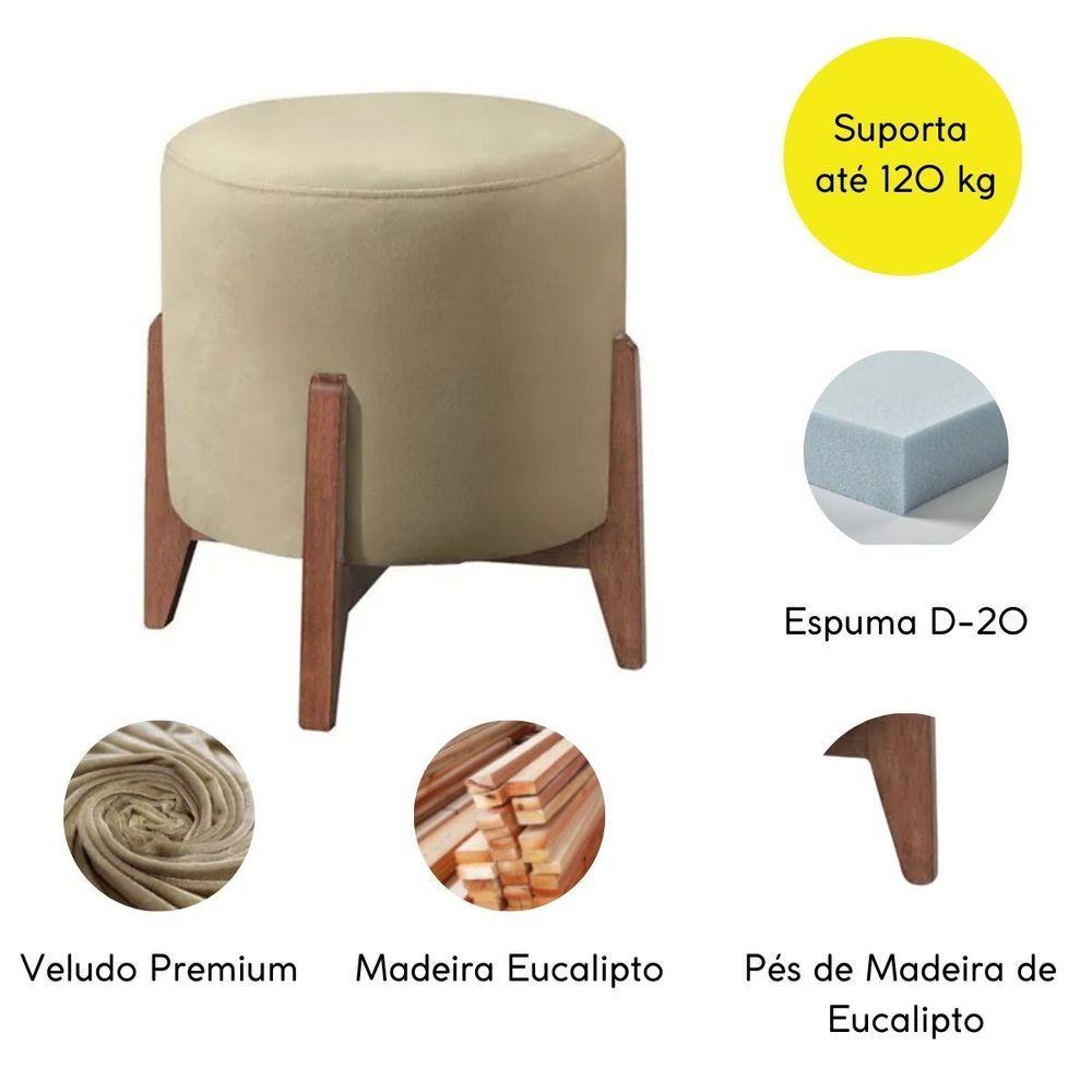 Puff Estofado Decorativo Para Sala Redondo Thor Veludo Cor:begeO Puff Para Sala é a escolha ideal pra você que busca mais conforto e elegância para o seu ambiente! Esse Puff Decorativo possui um design único e versátil para compor diferentes espaços da sua casa, como sua sala de estar, quarto, escritório e recepção ou até para quando receber visitas e quiser um lugar extra para acomodar os amigos, é aquele item que consegue fazer toda a diferença nos momentos de descontração e receptividade.O Puff Redondo para sala de estar é revestido em tecido Veludo, base em madeira eucalipto deixando os pés aparentes trazendo um toque de modernidade, é o móvel perfeito para valorizar a sua decoração.Garanta já o seu Puff Estofado moderno para quarto e ouse na sua utilização deixando seu ambiente ainda mais lindo!Dimensões:Altura: 43 cmLargura: 40 cmProfundidade: 40 cmAltura dos Pés: 11 cmPeso: 7 KgPeso Suportado: 120 Kg Especificações do Produto:Estrutura: Madeira EucaliptoDensidade da Espuma: Assento D-23Tecido: Veludo.Material dos pés: Madeira Eucalipto.Montagem: O produto vai montado.Instruções de Limpeza: Utilizar um pano limpo e levemente úmido.Você irá receber: 01 volume.Observações Relevantes:Produto para uso residencial em ambiente interno, não devendo ficar exposto diretamente ao sol, calor e umidades excessivas.Pode haver alguma diferença de tonalidade entre a imagem e o produto real, por conta do tratamento de imagens e a calibração de cores do seu monitor.As imagens são meramente ilustrativas, não acompanham objetos de decoração e eletros.