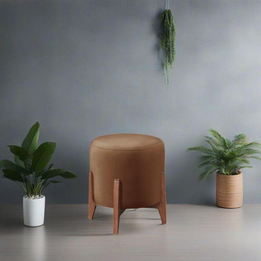 Puff Estofado Decorativo Redondo Eloá Corino capuccino
