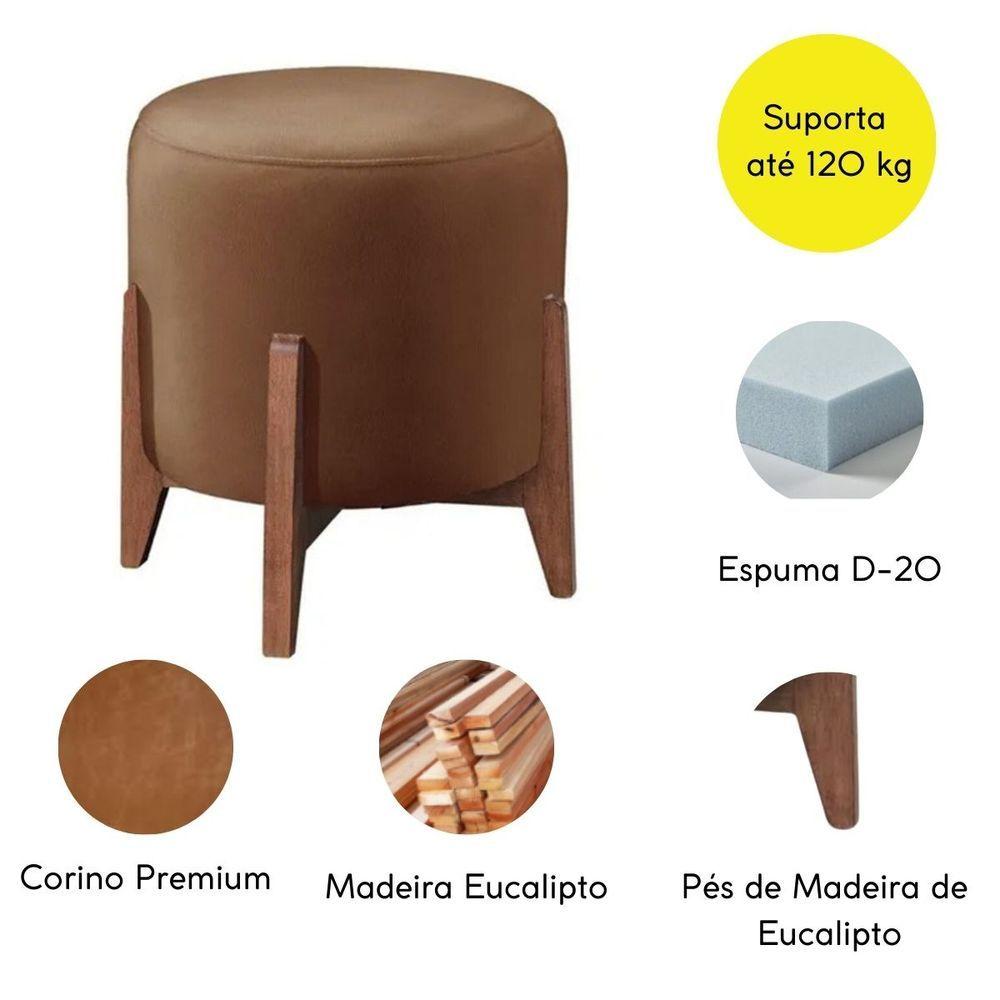 Puff Estofado Decorativo Para Sala Redondo Eloá Corino Cor:capuccinoO Puff Para Sala é a escolha ideal pra você que busca mais conforto e elegância para o seu ambiente! Esse Puff Decorativo possui um design único e versátil para compor diferentes espaços da sua casa, como sua sala de estar, quarto, escritório e recepção ou até para quando receber visitas e quiser um lugar extra para acomodar os amigos, é aquele item que consegue fazer toda a diferença nos momentos de descontração e receptividade.O Puff Redondo para sala de estar é revestido em tecido Corino, base em madeira eucalipto deixando os pés aparentes trazendo um toque de modernidade, é o móvel perfeito para valorizar a sua decoração.Garanta já o seu Puff Estofado moderno para quarto e ouse na sua utilização deixando seu ambiente ainda mais lindo!Dimensões:Altura: 43 cmLargura: 40 cmProfundidade: 40 cmAltura dos Pés: 11 cmPeso: 7 KgPeso Suportado: 120 KgEspecificações do Produto:Estrutura: Madeira EucaliptoDensidade da Espuma: Assento D-23Tecido: Corino.Material dos pés: Madeira Eucalipto.Montagem: O produto vai montado.Instruções de Limpeza: Utilizar um pano limpo e levemente úmido.Você irá receber: 01 volume.Observações Relevantes:Produto para uso residencial em ambiente interno, não devendo ficar exposto diretamente ao sol, calor e umidades excessivas.Pode haver alguma diferença de tonalidade entre a imagem e o produto real, por conta do tratamento de imagens e a calibração de cores do seu monitor.As imagens são meramente ilustrativas, não acompanham objetos de decoração e eletros.puff grande puff gigante puff quadrado puff puff para penteadeira infantil puff de crochê puff banqueta bau puff quadrado puffs sentar puff multiuso puff para quarto puff com enchimento puf pufe puff banquinho elegante luxo puff apoio puff retrô