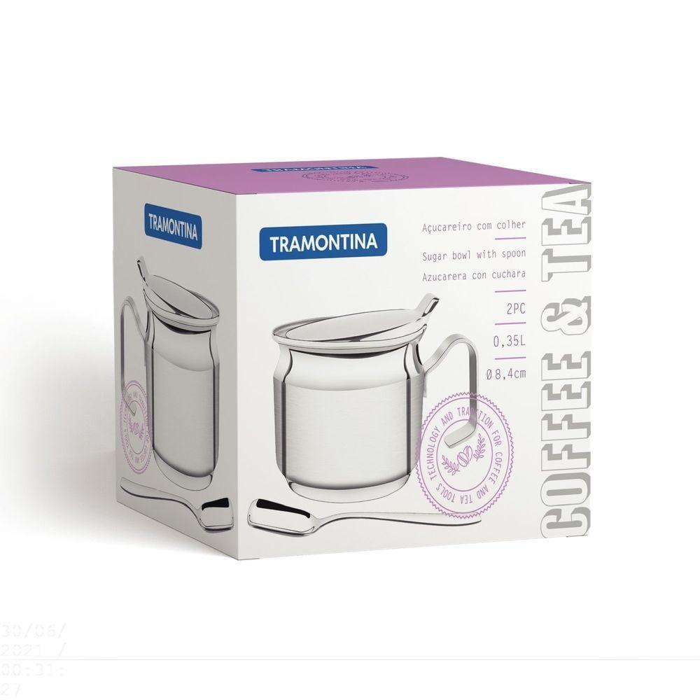 Açucareiro Tramontina Em Aço Inox Com Pá 8,4 Cm TramontinaAçucareiro Tramontina em Aço Inox com Pá 8,4 cm Tramontina -Sofisticação, beleza e durabilidade são as principais características do Açucareiro Tramontina em Aço Inox com Pá 8,4 cm de diâmetro. Produzido em aço inox com acabamento fosco, este produto da linha Chá e Café não libera resíduos nos alimentos e pode ser lavado diariamente na máquina lavar louças.OrientaçõesTotalmente feitos de aço inox, por isso não soltam nenhum resíduo nos alimentos, mantendo-os saudáveis.Altamente duráveis, mantêm as características , preservando a beleza, a higiene e a durabilidade do material.Acabamento fosco comdetalhe em brilho.Próprio para o diário, combinam com qualquer ambiente.Versatilidade e beleza na hora de servir.Podem ser lavados, diariamente, na máquina de lavar louças.Ideal para servir açúcar.Características GeraisEAN137891116000854DUN1417891116000851NCM7323.93.00Peso Líquido0,1700 kg.Peso Bruto0,2100 kg.Metragem0,000932 m³.Dimensões Embalagem (Compr. X Larg. X Alt.)115x 90x 90 mm.Dimensões Produto (Compr. X Larg. X Alt.)115x 84x 80 mm.Diâmetro8,4 cm.Capacidade0,35 l.Espessura0,7 mm.ObservaçõesUse apenas sabão ou detergente e uma esponja macia. Outros tipos de produto como palha de aço, poderão riscar ou prejudicar o brilho das peças.Enxágue cada item a fim de remover totalmente os resíduos dos produtos de limpeza, que, por serem abrasivos, podem danificar o inox.Sempre que possível, use água quente, pois renova o brilho das peças.Após a lavagem, enxugue imediatamente as peças, caso contrário, as substâncias químicas da água (cloro) poderão causar manchas.Evite atrito entre as peças durante o processo de lavagem e no armazenamento, para mantê-las sem riscos.Evite o contato do produto com superfícies quentes, pois elas provocam a descoloração do material.Não guarde as peças em locais úmidos. A umidade também provoca manchas.Características Gerais do Produto:Garantia: - 1 Ano