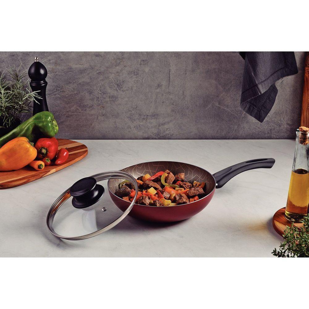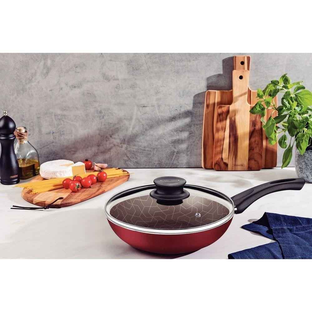 Frigideira Funda Tramontina Paris Antiaderente Starflon Max Vermelho Tampa Vidro 26 Cm 2,9 L Tramontina
