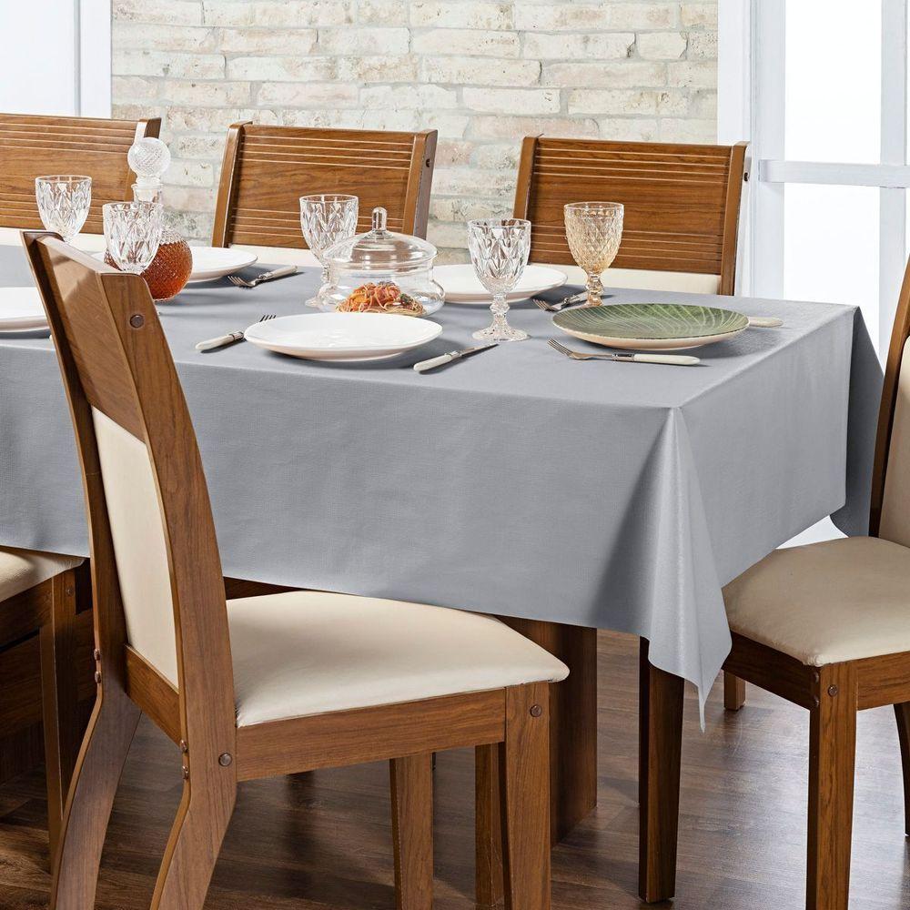 Toalha De Mesa 8 Lugares Térmica Impermeável 1,40 M X 2,50 M 100% Policloreto De Vinila - Cinza