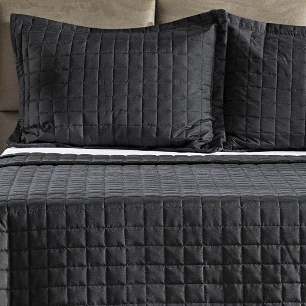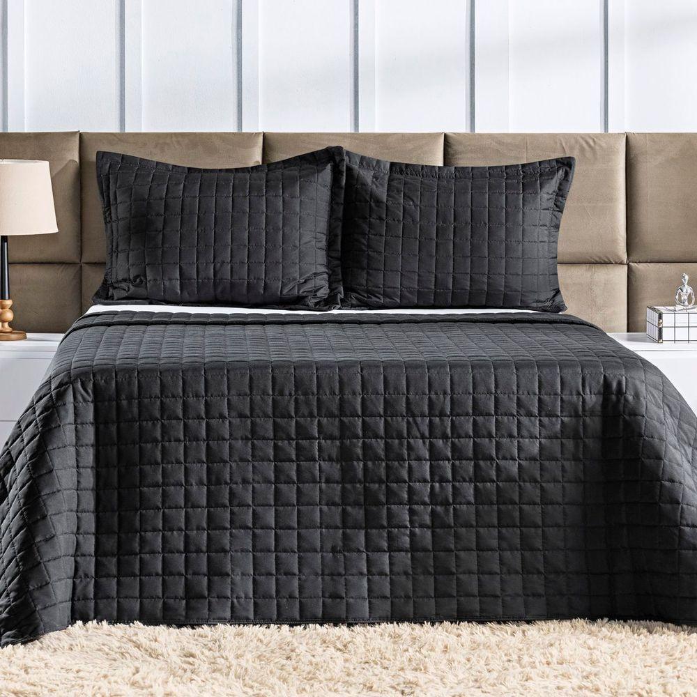 Cobre Leito Colcha King Com 2 Porta Travesseiros Matelassê Percal 300 Fios Basic 100% Poliéster - Preto