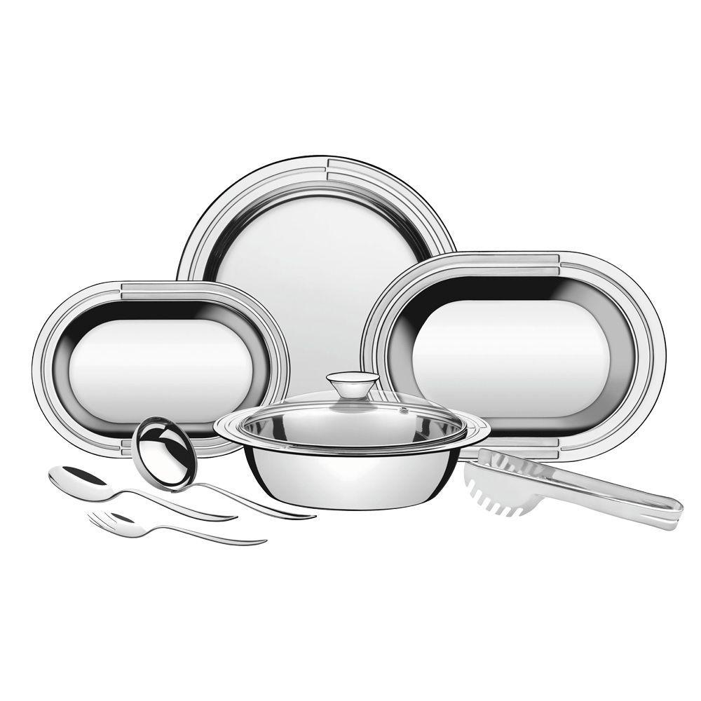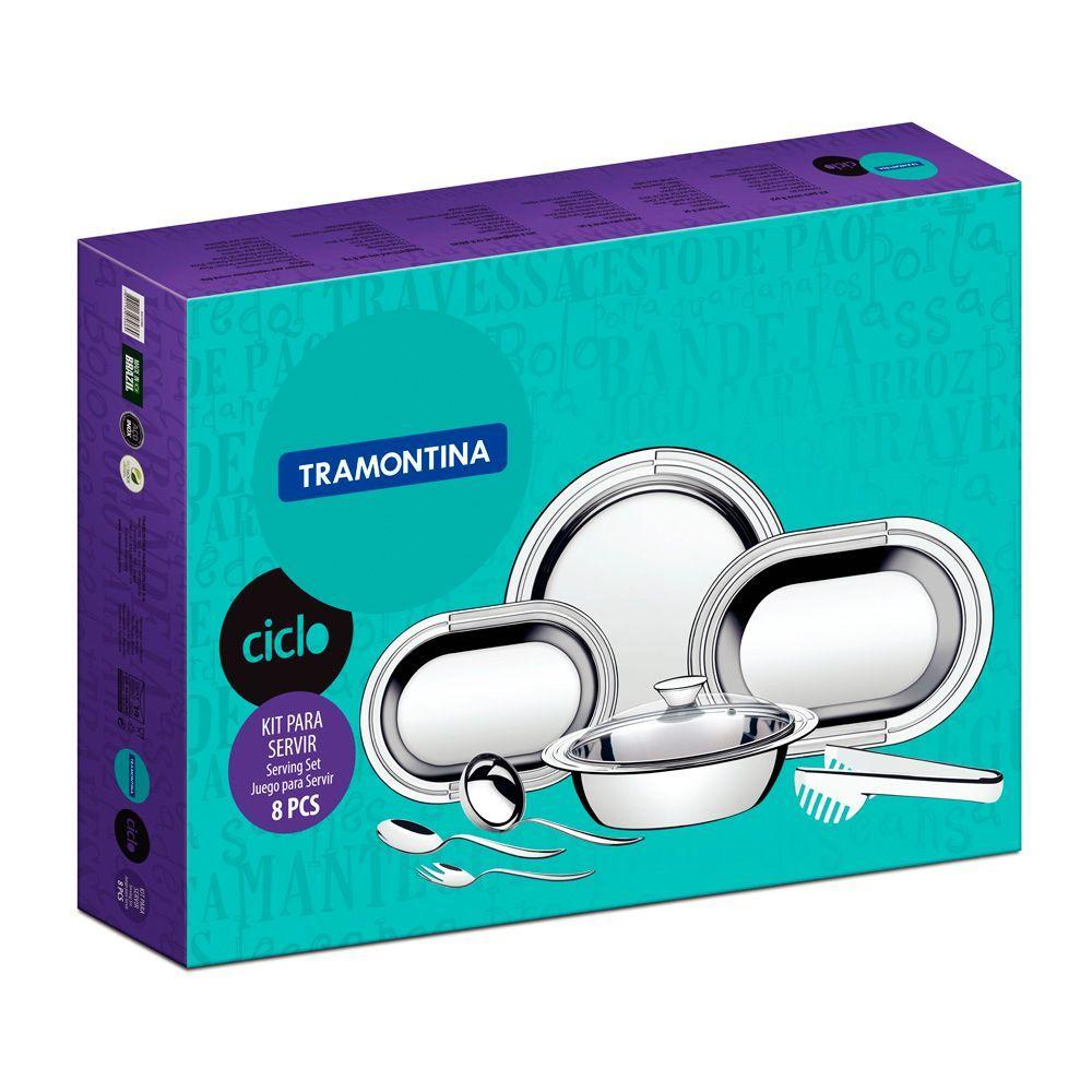Jogo De Assadeiras Tramontina Ciclo 64510890 Inox Com AcessóriosDimensões AxLxP (mm): Travessa Rasa 302x209; Travessa Funda 252x175; ; Prato Redondo 30cm;; Saladeira Redonda 26cm; 1,9 Litros; Tampa Avulsa 20cm;Cor: Inox / Transparente;Material: Aço Inox e Vidro;Garantia: 90 dias junto ao fabricante;Referência: 64510890;Pegador / Cabo: InoxItens Inclusos1 Travessa Rasa 30,2cm;1 Travessa Funda 25,2cm;1 Prato Redondo 30cm;1 Saladeira Redonda 26cm;1 Tampa Avulsa de Vidro Temperado 20cm;1 Pagador de Massa;1 Colher para Salada;1 Garfo para Salada;1 Concha para Feijão
