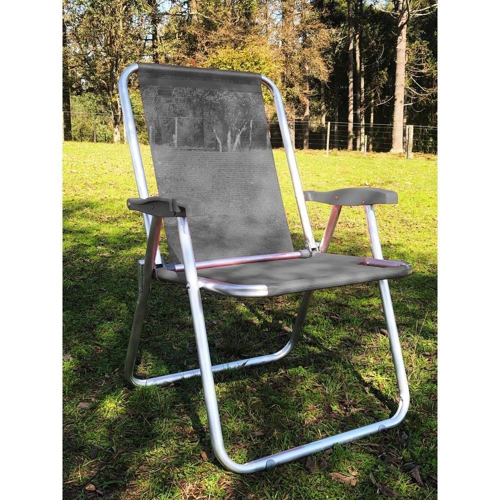 Kit 2 Cadeira Praia Max Alumínio Oversize Cinza Reforçada 140kg Zaka Cinza