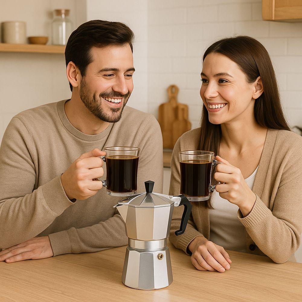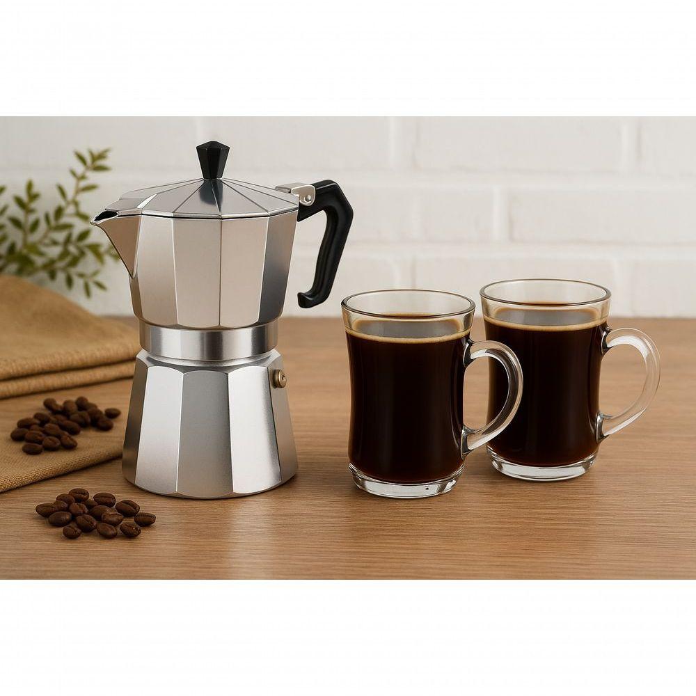 Cafeteira Italiana + 2 Canecas De Vidro 150mlKIT CAFETEIRA ITALIANA + 2 CANECAS DE VIDRO 150MLEleve seus momentos de café com este kit completo, composto por uma Cafeteira Italiana (3 xícaras) e 2 Canecas de Vidro 150ml, perfeitas para preparar e servir bebidas com mais sabor, elegância e praticidade.A Cafeteira Italiana, feita em alumínio de alta qualidade, prepara um café encorpado, aromático e fresco em poucos minutos, ideal para quem valoriza o verdadeiro sabor do café passado na pressão. Já as canecas de vidro resistente, compatíveis com máquinas Nespresso, Dolce Gusto e cafeteiras expresso, valorizam a cor, a cremosidade e a apresentação da bebida, tornando a experiência ainda mais especial. Benefícios do KitPreparo rápido e prático de café fresco e encorpadoCanecas transparentes que realçam a cor e cremosidade da bebidaKit ideal para uso diário, degustação e servir visitasPerfeito para cozinhas modernas, cafeterias, padarias e ambientes comerciaisExcelente opção de presente O que acompanha1 Cafeteira Italiana – Capacidade para até 3 xícaras2 Canecas de Vidro 150ml – Resistentes, elegantes e ergonômicas Características da Cafeteira ItalianaMaterial: Alumínio de alta durabilidadePreparo em média: 4 minutosDimensões: 15 × 14,5 × 9,5 cmFácil de usar e limparCafé mais forte, aromático e saboroso Características das Canecas de Vidro (150ml)Material: Vidro de alta resistência térmicaCompatíveis com Nespresso, Dolce Gusto e máquinas expressoAlça ergonômica e confortávelTransparente – destaque total para a bebidaPode ir à lava-louçasIdeal para café, cappuccino, chá, chocolate quente e infusões