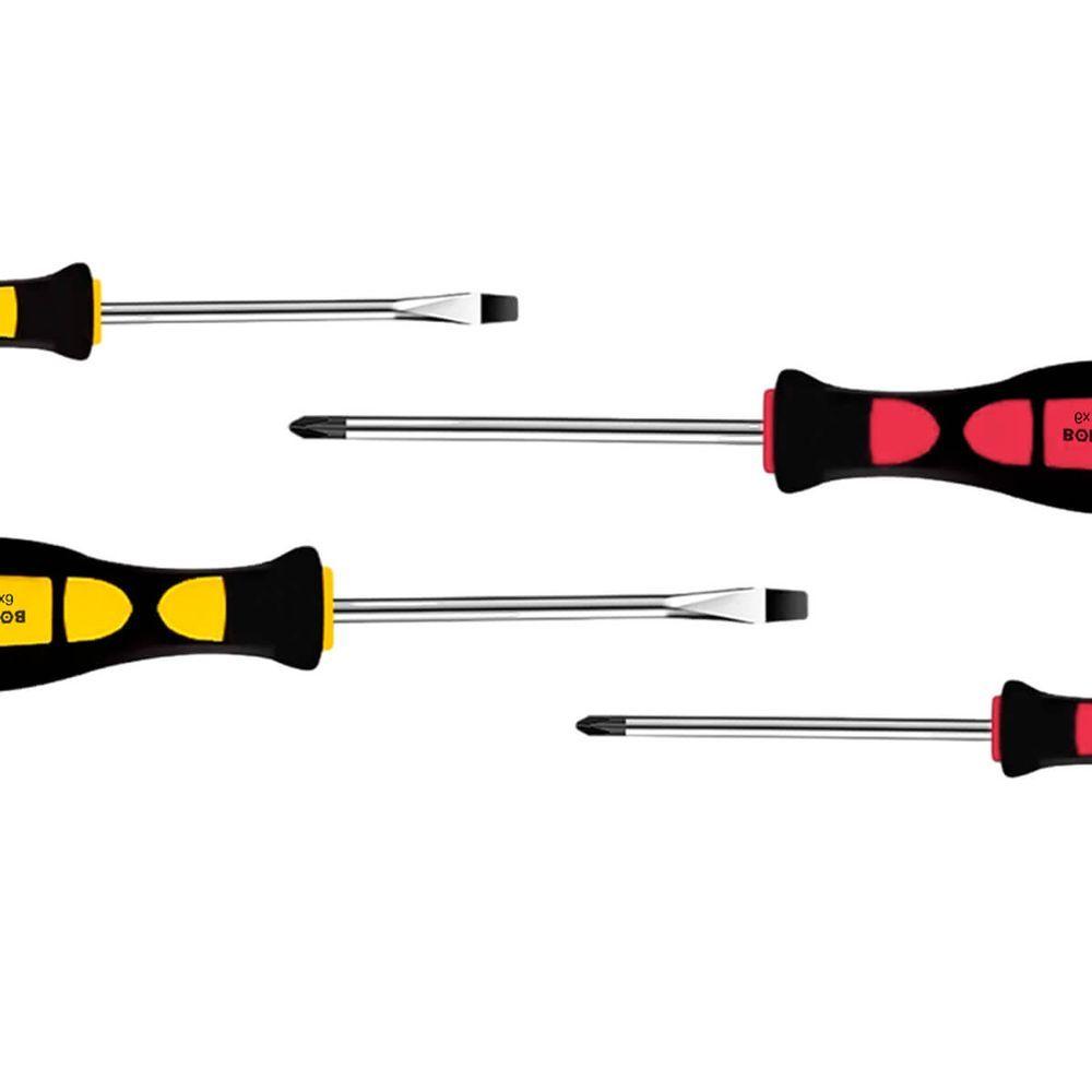 Kit De Chave De Fenda E Phillips 4 Peças Com Imã