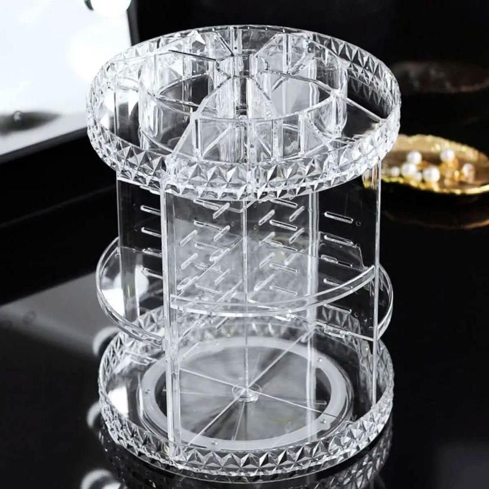 Organizador De Maquiagem Giratório 360° Transparente Em AcrílicoMantenha sua penteadeira ou bancada de beleza organizada com o Organizador de Maquiagem Giratório [Acrílico]. Com um design giratório de 360°, ele oferece praticidade e eficiência ao permitir acesso rápido e fácil a todos os seus produtos de maquiagem e cuidados pessoais. Perfeito para armazenar batons, pincéis, perfumes e muito mais, o organizador é uma solução versátil e elegante para o seu dia a dia. Fabricado em acrílico transparente de alta qualidade, combina durabilidade com um visual sofisticado, além de ser fácil de limpar. O material transparente garante visibilidade completa dos itens armazenados, facilitando a organização e localização de cada produto. Com nichos ajustáveis e repartições personalizáveis, você pode adaptar o espaço interno de acordo com suas necessidades, tornando este organizador um item essencial para o seu espaço de beleza.Informações Técnicas :Material: Acrílico transparente de alta qualidade Diâmetro: 24 cm Altura: 33 cm Repartições: Nichos ajustáveis para personalização do espaço Design: Giratório 360° para acesso prático e rápido Manutenção: Fácil de limpar e resistenteItens Inclusos :1x Organizador de Maquiagem Giratório