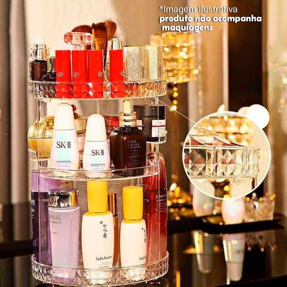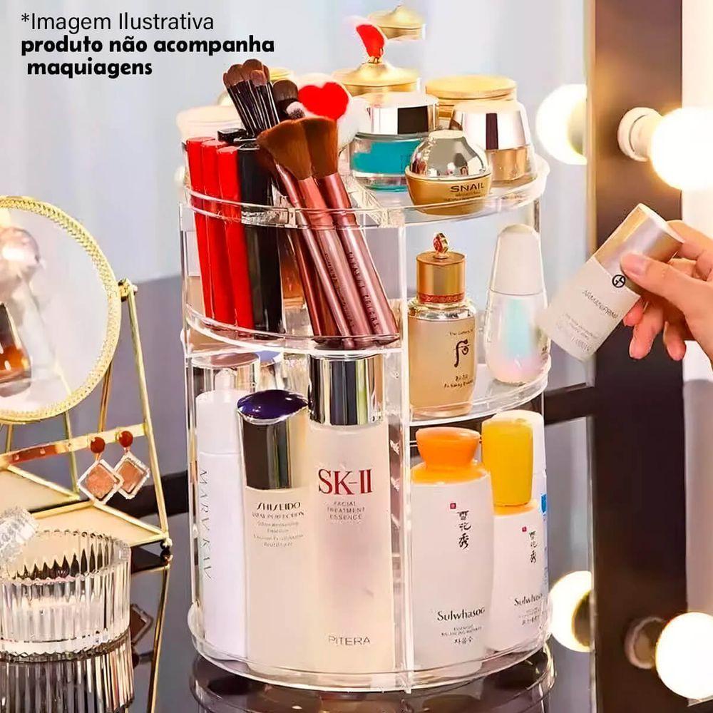 Organizador De Maquiagem Giratório 360° Transparente Em Acrílico
