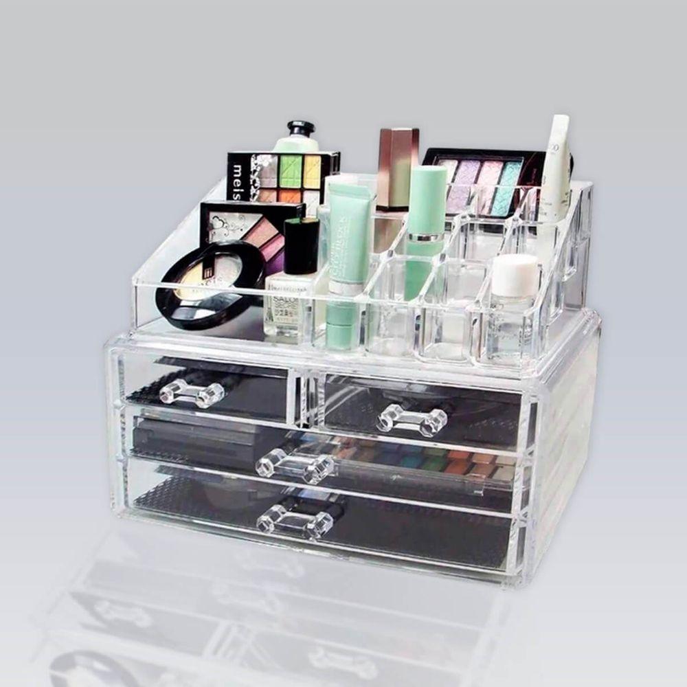 Organizador Multifuncional De Maquiagens E Cosméticos Com GavetasTransforme a organização do seu espaço com o Organizador de Maquiagem com Gaveta [Acrílico], a solução perfeita para manter suas maquiagens, cosméticos, joias e acessórios sempre organizados e ao alcance das mãos. Com um design sofisticado e elegante, ele é ideal para mesas, penteadeiras ou bancadas, trazendo praticidade e beleza ao ambiente. Fabricado em acrílico polido de alta qualidade, o organizador é resistente a quedas e impactos, garantindo durabilidade e para seus itens. Suas 16 divisórias superiores são ideais para armazenar batons, pincéis, esmaltes e outros produtos menores, enquanto as 4 gavetas espaçosas comportam perfumes, cremes, paletas e bijuterias com facilidade. Além de funcional, seu acabamento transparente permite visualizar rapidamente todos os itens, economizando tempo durante sua rotina. Compacto e com alta capacidade de armazenamento, ele é a escolha ideal para quem busca manter tudo no lugar, sem abrir mão do estilo.Informações Técnicas:Cor: Transparente Material: Acrílico polido de alta resistência Modelo: 16 divisórias + 4 gavetas Dimensões: Altura: 26 cm Comprimento: 22 cm Largura: 11 cm Uso: Ideal para maquiagens, joias, cosméticos e acessórios Destaques: Alta resistência contra batidas e quedas Design compacto e funcional Acabamento transparente que facilita a visualização Armazenamento multidimensionalItens Inclusos:1x Organizador de Maquiagem com Gaveta [Acrílico]