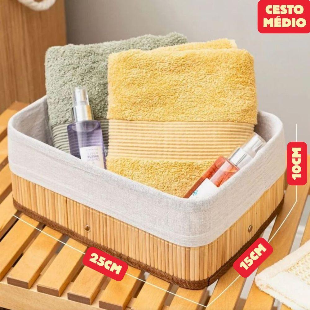 Conjunto 3 Cestos Organizadores Guarda-roupa Bambu