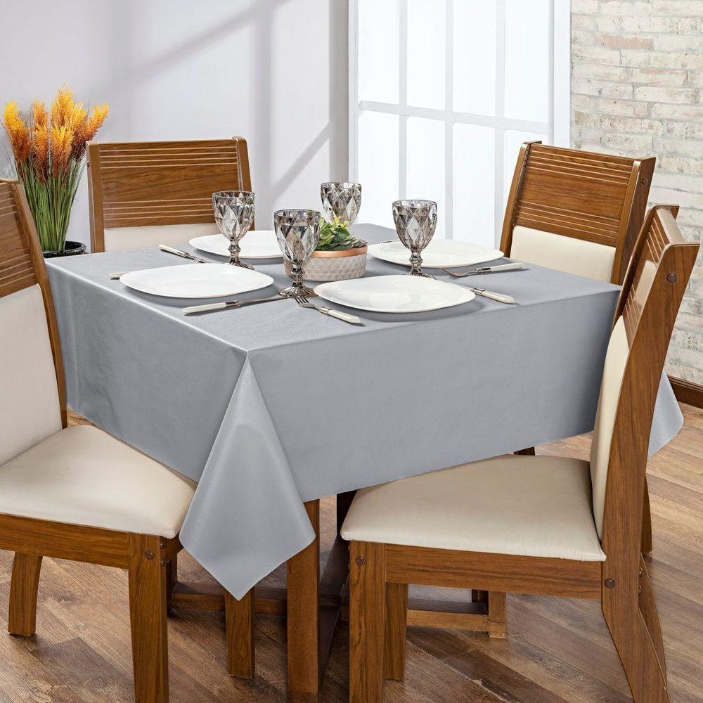 Toalha De Mesa 4 Lugares Térmica Impermeável 1,40 M X 1,40 M 100% Policloreto De Vinila - Cinza