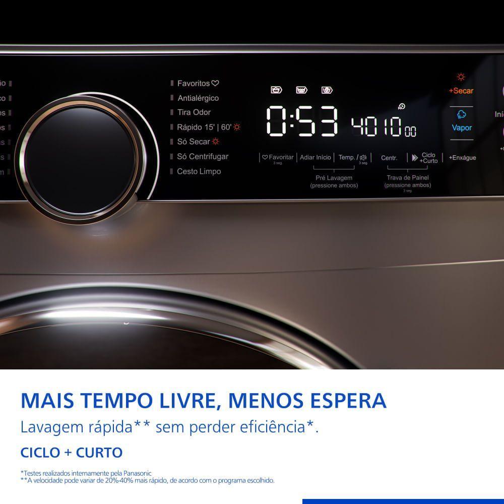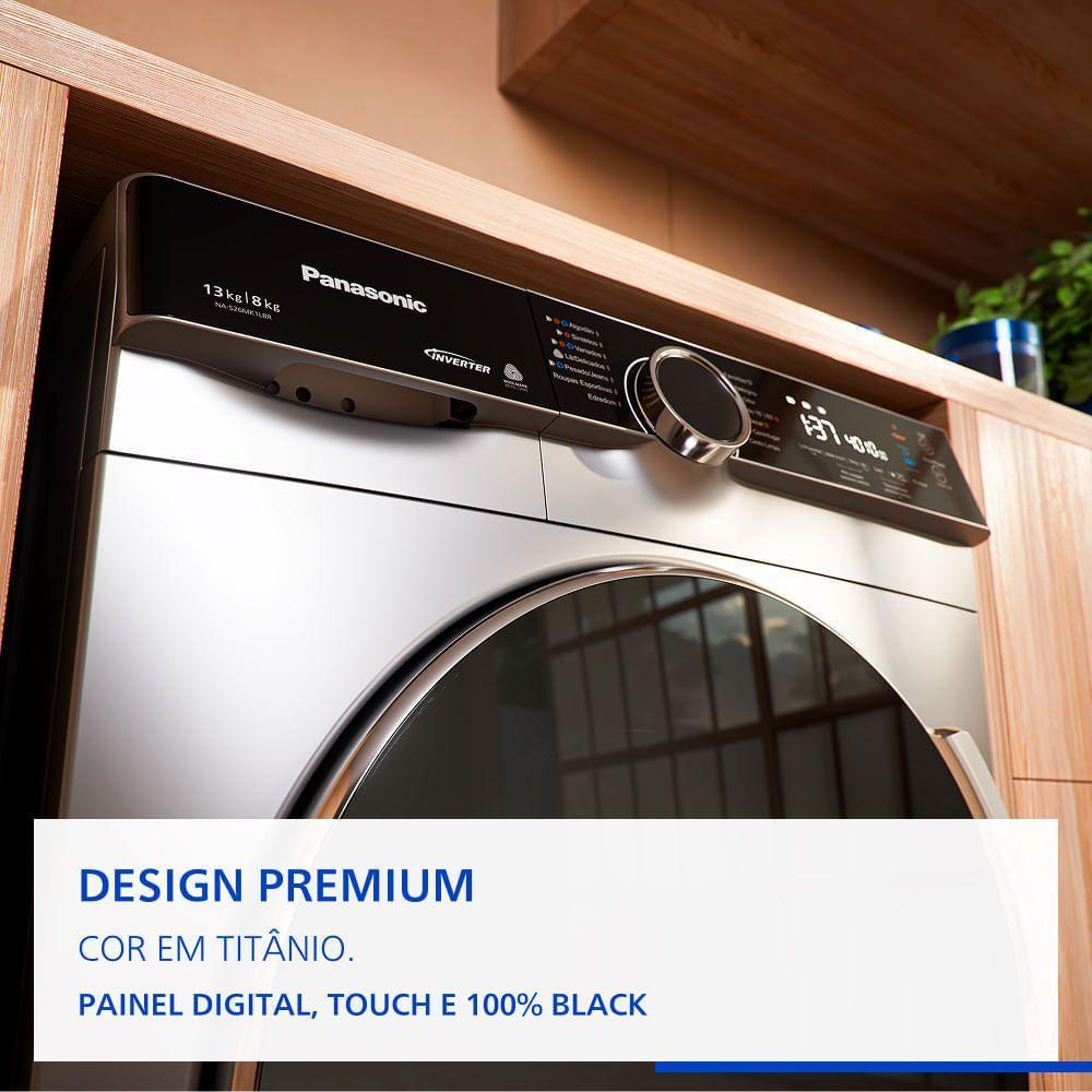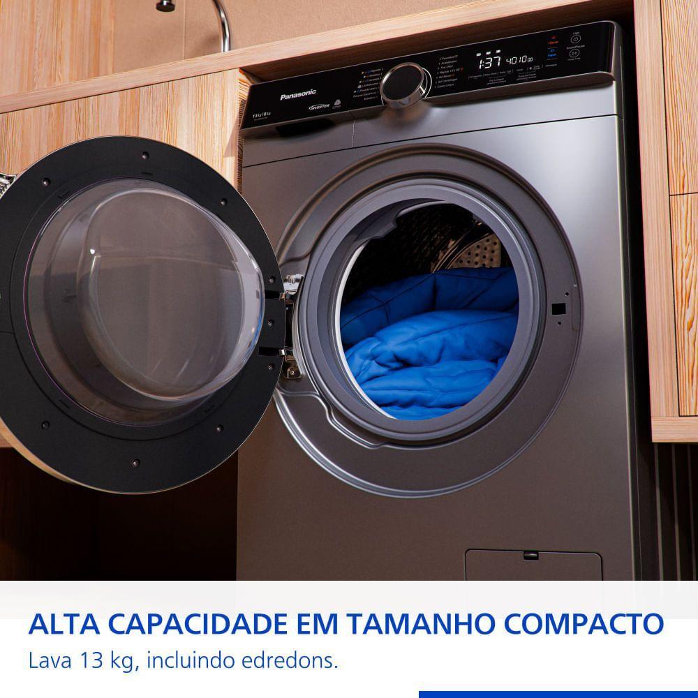 Lava e Seca Intuitive+ Panasonic 13kg/8kg Max Wash Função Vapor+ NA-S26MK1LBR 220VDesign premium em titânio com painel dial+touch: mais estilo e tecnologia para sua lavanderiaA Lava e Seca Max Wash da Panasonic combina design premium, tecnologia e praticidade em um só produto. Com acabamento em titânio, 100% black e painel com dial + touch, ela foi pensada para levar mais elegância e modernidade à sua lavanderia, transformando a rotina com estilo e eficiência.O ciclo mais curto otimiza seu tempo, agilizando a lavagem do dia a dia sem perder em desempenho e eficiênciaA função de ciclo mais curto da lava e seca Panasonic foi pensada para quem valoriza cada minuto do dia. Ideal para rotinas dinâmicas, ela reduz o tempo de lavagem sem abrir mão da performance, entregando praticidade e agilidade com a eficiência que só um produto premium oferece.Elimina até 99,99% das bactérias com vapor e calor intenso. Higiene elevada a outro nívelCom a função Vapor + , a lava e seca Panasonic oferece mais que limpeza: proteção. O vapor em alta temperatura promove esterilização de até 99,99% das bactérias antes da lavagem, enquanto o ciclo potencializa a higiene com calor intenso. Um cuidado essencial para quem busca bem-estar no dia a dia.Silencioso, durável e econômico: o motor Inverter mais conforto e performanceO motor Inverter da lava e seca Panasonic garante mais eficiência energética e desempenho superior. Com funcionamento silencioso e menos vibrações, é ideal para quem busca conforto acústico em ambientes compactos. Além disso, oferece maior durabilidade, mantendo a performance do seu equipamento por muito mais tempo.Alta capacidade em tamanho compacto: lava até edredom em apenas 60 cm de largura.Com capacidade para lavar até 13 kg de roupas em um corpo de apenas 60 cm de largura, a lava e seca Panasonic alta performance sem ocupar espaço. Ideal para apartamentos e lavanderias compactas, ela combina eficiência e inteligência no design. Lave até edredons com conforto e praticidade, mesmo em espaços reduzidos.Capacidade Lavagem: 13KgAtributo Condition: NewSelo beneficio 2: Sistema AntibactériaEficiência energética: ATrava de para crianças: SimGarantia: 12 mesesPeso líquido (Kg): 70Capacidade: 13 KgTecnologia: Inverter Espuma ativaPeso Bruto (Kg): 74Capacidade: 13 kgLargura sem Embalagem (Cm): 59,5Altura sem Embalagem (Cm): 85Profundidade sem Embalagem (Cm): 62Largura com embalagem (Cm): 69Altura com embalagem (Cm): 88,5Profundidade com embalagem (Cm): 72,5