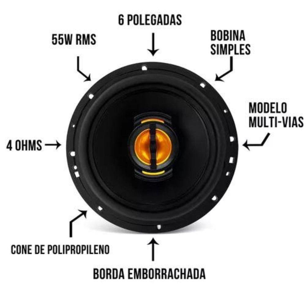 Par Alto Falantes 6 Polegadas Jb6 Flex Le Son 110w 4 OhmsPar Alto Falantes 6 Polegadas JB Flex Le Son 110W 4 Ohms AutomotivoOs novos alto-falantes da LeSon JB Flex , com 55W Rms cada, apresenta qualidade, desempenho e simplicidade, razão do melhor custo-benefício, sem abrir mão da qualidade.Ótima qualidade de material, design moderno, indicado pra instalação nas portas do veículo.São fáceis de instalar, possuem qualidade de som e deixa o seu carro com um design mais moderno. Além disso, o JB Flex Polegadas possui uma resposta de frequência ampla e equilibrada, reproduzindo com fidelidade todos os detalhes musicais. Seu ótimo desempenho permite que você desfrute de uma experiência sonora excepcional enquanto está na estrada.Especificação Técnica:- Potência RMS: 55 Wrms (cada alto-falante)- Impedância Nominal: 4 ohms- Woofer de 6 Polegadas- Material: Cone Polipropileno PP- Tipo de falante: Coaxial (Woofer + Tweeter)- Borda emborrachada- Sensibilidade: 87 Db- Resposta de frequência: 37 Hz a 20 Khz- Tweeter Piezzo- Bobina Simples- Peso: 296g (cada)Dimensões do alto-falante:- Diâmetro do falante: 14 cm- Altura: 16,5 cm- Largura: 16,5 cm- Comprimento total: 6 cm- Comprimento interno: 4,5 cm- Largura da furação: 15 cmDimensões da embalagem:-Altura: 13 cm-Largura: 19 cm-Comprimento: 18 cm-Peso: 719gConteúdo da Embalagem:1 Par de Alto Falantes 6 Polegadas JB Flex 110W