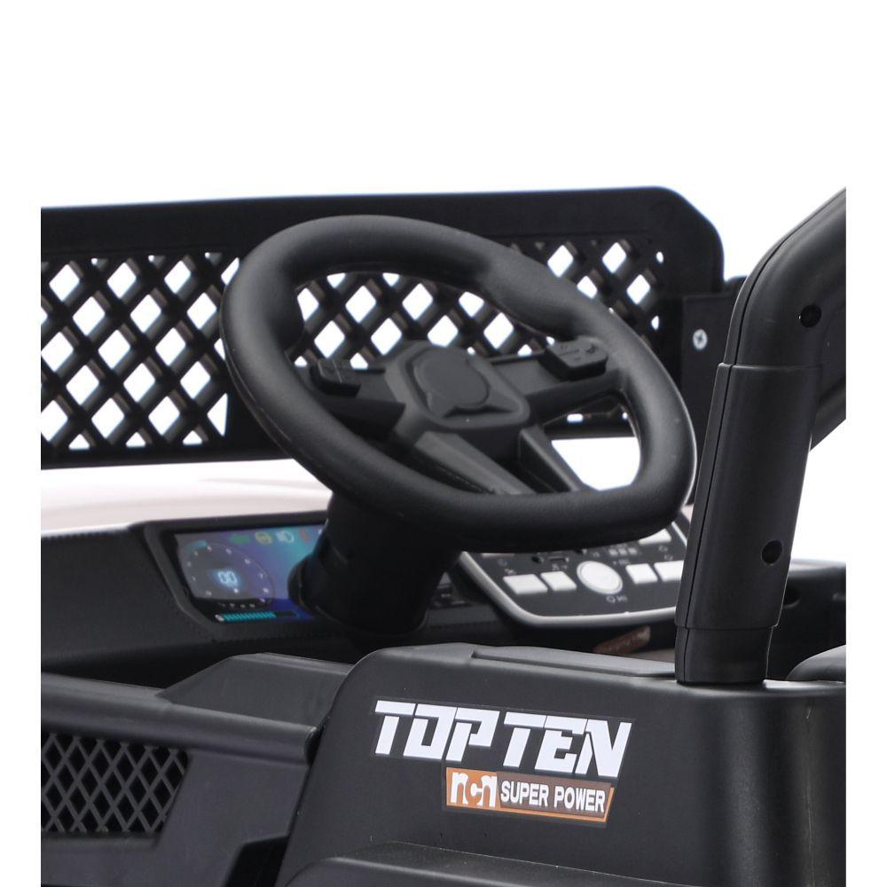 Jipe Elétrico Infantil Bang Toys N6 Com Controle Remoto Branco 12vJipe Elétrico Infantil Bang Toys N6 Com Controle Remoto Branco 12VEste Super Carro Elétrico Infantil 2 em 1 da Bang Toys é a escolha perfeita para aventuras seguras e cheias de estilo. Oferecendo a flexibilidade da direção manual pela criança ou controle remoto pelos pais e um sistema de segurança robusto com cinto de 2 pontos e trava nas portas.Especificações Técnicas:Modelo: N6Cor: BrancoMarca: Bang ToysIdade recomendada: 3 anos ou com peso máximo de até 30 kg.Direção 2 em 1: Pode ser controlado tanto a distância pelo controle remoto, como manualmente pela criança de dentro do veículo.Recomendado somente: 1 criança por vezBateria recarregável: 2 Baterias de 6VEspecificação da bateria: 6V4AH/20HRTempo de carregamento: de 8 a 12 horasDuração da bateria: de 40 min a 1 horaVelocidade máxima: 3 a 5km/hAcompanha carregador: bivoltAcompanha controle remoto: Sim (Pilhas Não Incluídas)Cinto de segurança: de dois pontos com reguladorMaterial do Assento: Plástico resistenteMaterial das Rodas: Plástico resistente.Perguntas Frequentes:- Tem Ré? Botão ou cambio? Sim, botão na placa- Luz de Led no farol dianteiro? Sim- Luz de Led no farol traseiro? Não- Possui botão que desliga os faróis? Sim, pisca, liga e desliga- Possui modo balanço? Qual botão? Sim, botão na placa- Acionamento da buzina no volante? Sim- Tem placa multimídia? Sim- Tem Entrada P2 (cabo auxiliar)? Sim- Tem USB? Sim tipo C- Tem bluetooth? Sim (HH-CAR)- Tem música? Sim- As portas abrem? Sim- Tem trava de segurança nas portas? Sim- Tem chave? Não- Luz no painel? Não- Voltímetro digital que marca o percentual de uso da bateria? Sim- Botão para aumentar/diminuir o volume? Sim- Botão de Liga/Desliga que emite ronco do motor? Sim- Botão de seleção para troca de velocidade? Sim no controle- Pedal para que a criança possa acelerar? Sim- Local de carregamento (soquete): Na placa- Precisa parear controle remoto? Não- RPM motores: 2 motores - 12V 15000- Especificação do carregador: 12V 1000- Especificação do controle: ZKYT-002 (Colmeia cinza)- Modulo: -- Rele: 7AConteúdo da Embalagem:- 01 Carro Elétrico Infantil- 01 Carregador Bivolt (110V/220V)- 01 Controle Remoto*PARA LIGAR O BLUETOOTH: Pressionar o botão que aciona os faróisPossui Led no Santo AntônioEixo dianteiro desmontadoVolante de encaixeNão veio presilha p/ eixo do volantePeça estela nas rodas traseirasDimensões e Peso Aproximadas:Medidas do produto (Aproximadas): 91cm(comp.) 57cm(larg.) 54cm(alt.)Peso do Produto: 10,2 kgMedidas Adicionais Internas:- Altura aproximada do assento/banco até o solo (medidas aproximadas): +/- cm 11- A distância aproximada entre o encosto do banco até o volante (medidas aproximadas): +/-cm 33- A altura aproximada da base do carrinho até o volante (medidas aproximadas): +/- cm 22,5Garantia: 03 Meses (3 meses de garantia legal para defeitos de fabricação).Certifique-se do prazo de garantia do produto no Manual de Instruções, e qualquer problema procure uma Autorizada.Importante: Imprescindível à conferência no ato da entrega. Em caso de anormalidade, recuse o recebimento.Todas as informações divulgadas são de responsabilidade do fabricante, podendo sofrer alterações sem nenhum aviso prévio.Imagem meramente ilustrativa.Jipe ElÃtrico Infantil Bang Toys N6 Com Controle Remoto Branco 12V