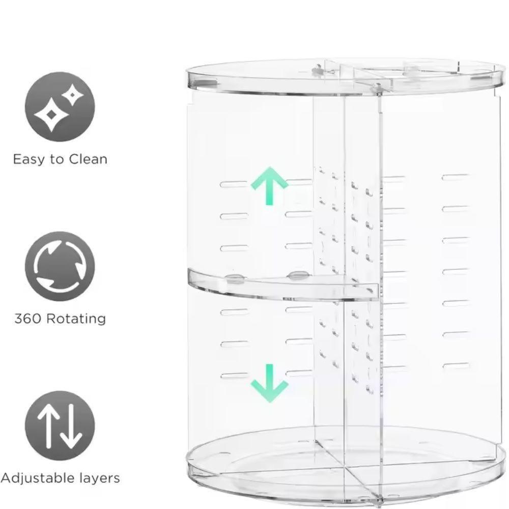 Prateleira Porta Maquiagem 4 Andares Organizador De Cosmeticos Giratorio Perfumes Suporte Acrilico Com RotacaoOrganizador de Maquiagem Rotativo 360° – Beleza, Praticidade e Sofisticação!Mantenha sua bancada sempre impecável e tenha acesso rápido e fácil a todos os seus cosméticos com o Organizador de Maquiagem Rotativo 360°! Com um design sofisticado em textura diamante, este organizador une elegância e funcionalidade, proporcionando espaço amplo e facilidade de uso para que seus produtos fiquem sempre organizados e ao seu alcance.Principais Benefícios:Rotação 360°: Gire suavemente para pegar seus cosméticos sem esforço.Alta Capacidade: Comporta até 30 emulsões, 20 frascos de skincare, além de batons, esmaltes, delineadores e muito mais.Prateleiras Ajustáveis: As divisórias multi-camadas permitem acomodar produtos de diferentes alturas.Material Resistente e Durável: Feito de acrílico transparente de alta qualidade, à prova d’água e fácil de limpar.Design Moderno e Sofisticado: Textura elegante em formato de diamante, proporcionando um toque luxuoso ao ambiente.Especificações Técnicas:Dimensões: 35 cm (A) x 23 cm (L) x 23 cm (C)Material: Acrílico transparente e resistenteCor Disponível: TransparenteConteúdo da Embalagem:1x Organizador de Maquiagem Rotativo 360°Ideal para quem busca praticidade, organização e um toque de sofisticação na hora de armazenar seus produtos de beleza.Organizador de Maquiagem Rotativo 360° – Beleza, Praticidade e Sofisticação!Mantenha sua bancada sempre impecável e tenha acesso rápido e fácil a todos os seus cosméticos com o Organizador de Maquiagem Rotativo 360°! Com um design sofisticado em textura diamante, este organizador une elegância e funcionalidade, proporcionando espaço amplo e facilidade de uso para que seus produtos fiquem sempre organizados e ao seu alcance.Principais Benefícios:Rotação 360°: Gire suavemente para pegar seus cosméticos sem esforço.Alta Capacidade: Comporta até 30 emulsões, 20 frascos de skincare, além de batons, esmaltes, delineadores e muito mais.Prateleiras Ajustáveis: As divisórias multi-camadas permitem acomodar produtos de diferentes alturas.Material Resistente e Durável: Feito de acrílico transparente de alta qualidade, à prova d’água e fácil de limpar.Design Moderno e Sofisticado: Textura elegante em formato de diamante, proporcionando um toque luxuoso ao ambiente.Especificações Técnicas:Dimensões: 35 cm (A) x 23 cm (L) x 23 cm (C)Material: Acrílico transparente e resistenteCor Disponível: TransparenteConteúdo da Embalagem:1x Organizador de Maquiagem Rotativo 360°Ideal para quem busca praticidade, organização e um toque de sofisticação na hora de armazenar seus produtos de beleza.