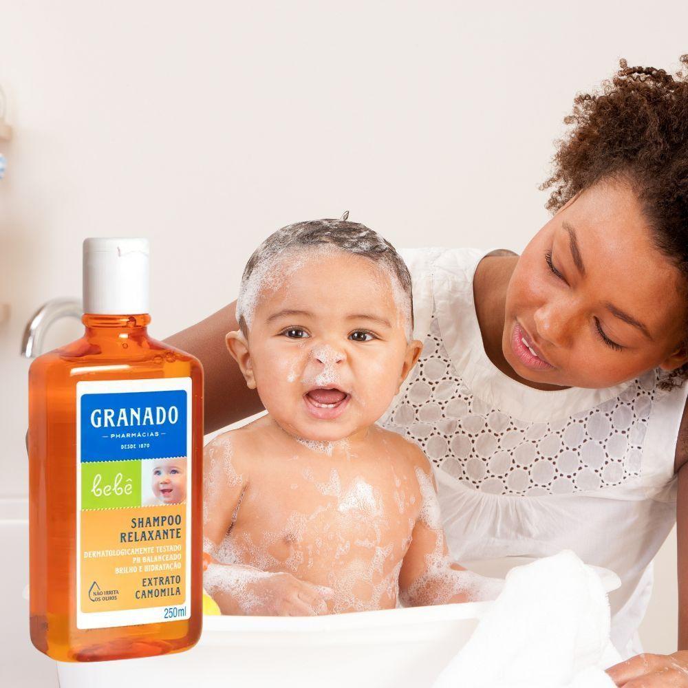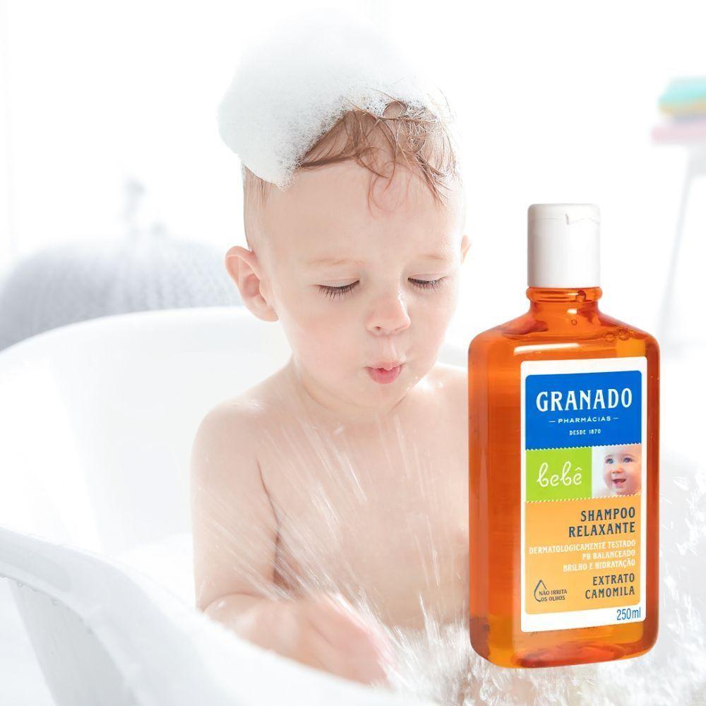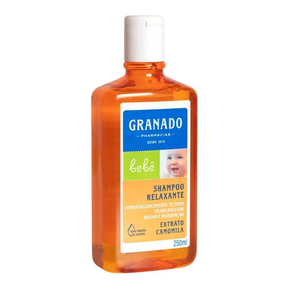 Shampoo Granado Relaxante Bebê Camomila 250ml Vegano E Livre De ParabenosO Shampoo Relaxante Camomila foi especialmente desenvolvido para limpar e perfumar os cabelos delicados do bebê.A fragrância traz toda a sutileza da flor combinada com o extrato natural da camomila, que tem propriedades calmante e relaxante, proporcionando bem-estar ao bebê.A do Shampoo Bebê de Granado tem 93% de ingredientes de origem natural e conta com uma composição suave, que não irrita os olhos, com pH balanceado, dermatologicamente testada e desenvolvida para minimizar o possível surgimento de alergia.O shampoo limpa suavemente o cabelo, deixando os fios macios, fáceis de pentear e perfumados.O produto é vegano, livre de parabenos, silicones e corantes. Nenhum produto Granado é testado em animais.Conteúdo: 250ml.