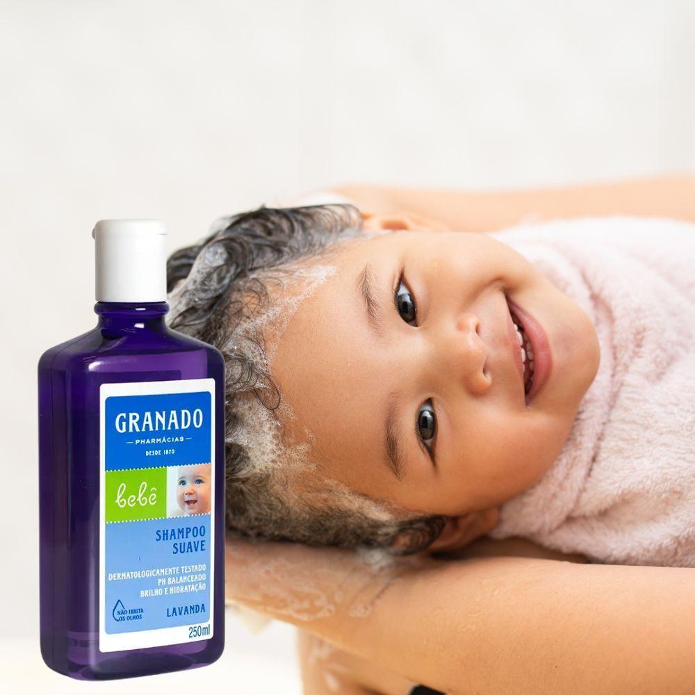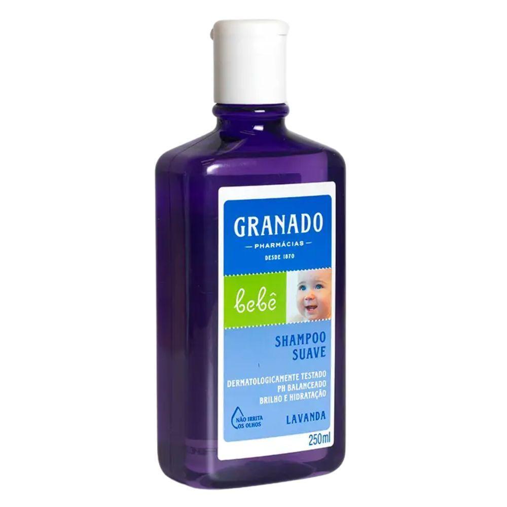 Shampoo Granado Bebê Lavanda 250mlFormulado com tensoativos suaves, o shampoo deixa os fios macios, fáceis de pentear e perfumados.Não irrita os olhos. Especialmente desenvolvido para o cabelo do bebê.Dermatologicamente testado.Livre de parabenos, corantes e ingredientes de origem animal.Conteúdo: 250ml.