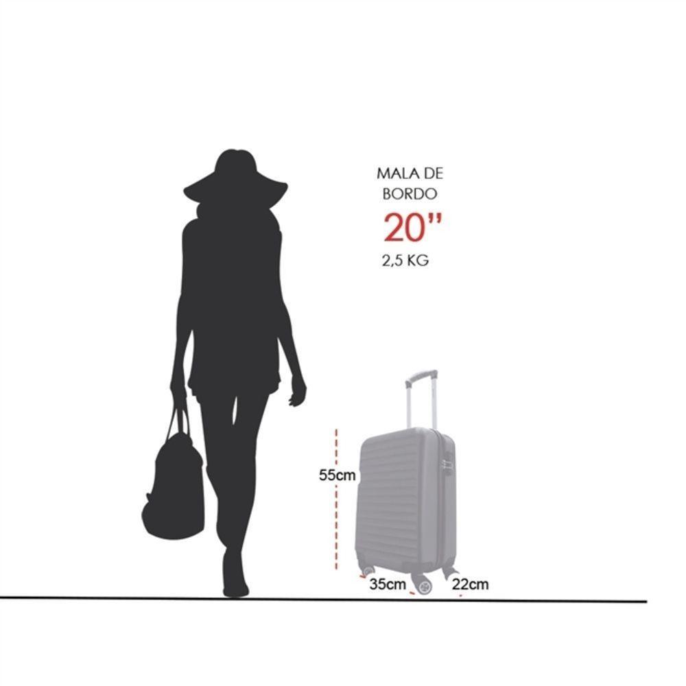 Mala De Viagem Rígida Abs Pequena De Bordo Giro 360° Padrão Anac Com Cadeado Leve E Segura PretoMALA DE VIAGEM RÍGIDA ABS DE BORDO PEQUENA GIRO 360° DE MÃO PADRÃO ANAC COM CADEADO PRETAVideo Meramente IlustrativoDescrição:A Mala de Viagem Rígida Pequena Kangur, na cor preta, é perfeita para quem busca estilo e funcionalidade em suas viagens. Confeccionada em ABS resistente, esta mala proporciona segurança e durabilidade. Suas rodas 360° garantem mobilidade fácil e rápida, ideal para ser levada a bordo, cumprindo todas as regulamentações da ANAC.Destaques:Estrutura: Rígida e arredondada, oferecendo um design moderno e proteção reforçadaZíper: Com furo passante, ideal para uso com cadeados, aumentando a segurançaRodinhas: 4 rodas giratórias 360°, proporcionando movimentação suave em todas as direçõesCadeado: Acoplado com senha, garantindo proteção extra aos seus pertencesAlça de Mão: Retrátil e superior, para facilitar o transporteSuportes Laterais: 4 suportes emborrachados, que mantêm a mala estável quando deitadaPuxador Telescópico: Com botão liberador para regulagem de altura, permitindo ajuste conforme a necessidadeInterior:Forro: Estampado, combinando praticidade com estiloOrganização: Equipado com elástico para prender roupas, porta documentos e separador de roupas íntimas, mantendo tudo em ordem durante a viagemFicha Técnica:Dimensões da Mala P: 55 cm x 35 cm x 24 cmCor: PretaMaterial: ABS resistenteMALA DE VIAGEM RÍGIDA ABS DE BORDO PEQUENA GIRO 360° DE MÃO PADRÃO ANAC COM CADEADO PRETAVideo Meramente IlustrativoDescrição:A Mala de Viagem Rígida Pequena Kangur, na cor preta, é perfeita para quem busca estilo e funcionalidade em suas viagens. Confeccionada em ABS resistente, esta mala proporciona segurança e durabilidade. Suas rodas 360° garantem mobilidade fácil e rápida, ideal para ser levada a bordo, cumprindo todas as regulamentações da ANAC.Destaques:Estrutura: Rígida e arredondada, oferecendo um design moderno e proteção reforçadaZíper: Com furo passante, ideal para uso com cadeados, aumentando a segurançaRodinhas: 4 rodas giratórias 360°, proporcionando movimentação suave em todas as direçõesCadeado: Acoplado com senha, garantindo proteção extra aos seus pertencesAlça de Mão: Retrátil e superior, para facilitar o transporteSuportes Laterais: 4 suportes emborrachados, que mantêm a mala estável quando deitadaPuxador Telescópico: Com botão liberador para regulagem de altura, permitindo ajuste conforme a necessidadeInterior:Forro: Estampado, combinando praticidade com estiloOrganização: Equipado com elástico para prender roupas, porta documentos e separador de roupas íntimas, mantendo tudo em ordem durante a viagemFicha Técnica:Dimensões da Mala P: 55 cm x 35 cm x 24 cmCor: PretaMaterial: ABS resistente