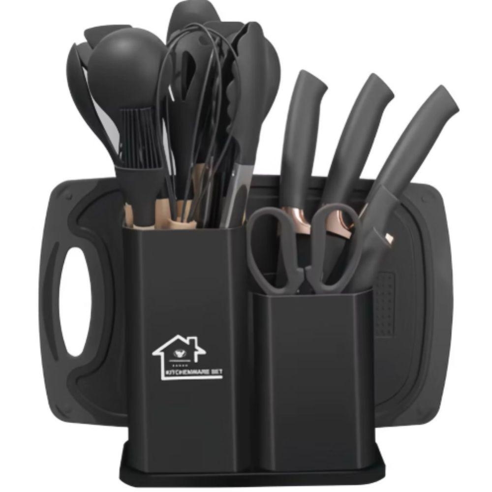Jogo De Utensílios 19pçs Luxo Com Tábua De Silicone