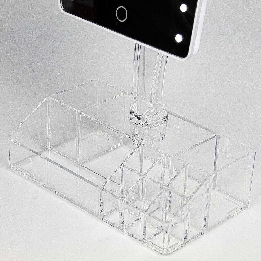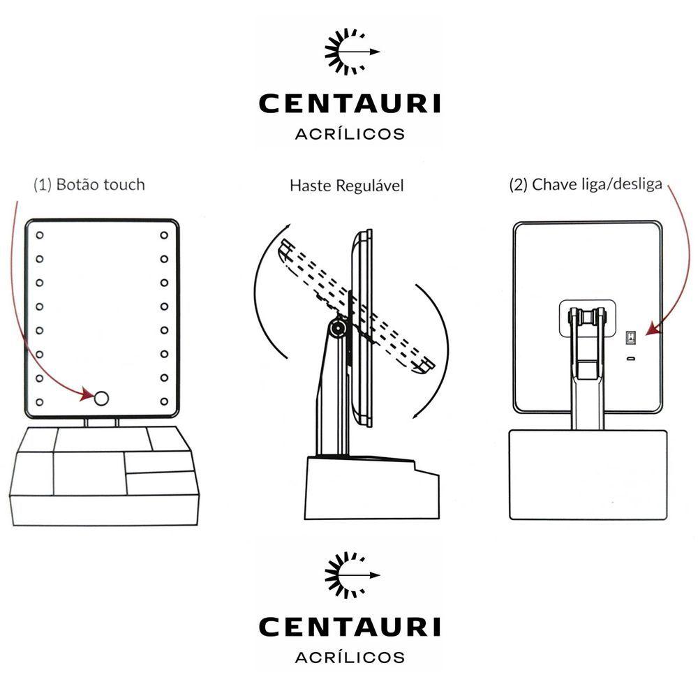 Organizador Maquiagem Cosméticos 9 Nichos Acrílico Premium Com Espelho Led 16 Luzes Touch RegulávelOrganizador de Maquiagem com Espelho LED Touch Beleza e Praticidade no Seu Dia a DiaSe você busca um organizador de maquiagem funcional e sofisticado, o Organizador de Maquiagem com Espelho LED Touch é a escolha perfeita. Feito em acrílico premium, ele conta com 9 nichos espaçosos para armazenar seus cosméticos favoritos de forma prática e acessível. Além disso, seu espelho de mesa com 16 luzes LED proporciona uma iluminação perfeita para a sua rotina de beleza, garantindo maquiagem impecável em qualquer ambiente.Destaques do Produto:Design Moderno e FuncionalCom um design elegante e sofisticado, este organizador combina perfeitamente com qualquer ambiente, seja no seu quarto, banheiro ou penteadeira. O acrílico premium oferece alta durabilidade e um toque de requinte para sua decoração.Espelho LED com Ajuste de IluminaçãoO espelho de mesa incluso possui 16 luzes LED reguláveis, proporcionando uma iluminação ideal para maquiagem, skincare e cuidados diários. Basta pressionar o botão touch para acionar a luz e segurar para ajustar a intensidade.Amplo Espaço para OrganizaçãoOs 9 nichos foram estrategicamente projetados para acomodar batons, pincéis, bases, perfumes e outros cosméticos. Assim, você mantém tudo organizado e ao seu alcance, facilitando sua rotina de beleza.Duas Opções de AlimentaçãoO espelho pode ser alimentado de duas formas:Via cabo USB (incluso) conecte em qualquer fonte de energia com entrada USB.Com 4 pilhas AA (não inclusas) para maior mobilidade e praticidade.Especificações Técnicas:Dimensões: 22 cm (altura) x 12,5 cm (largura) x 32 cm (comprimento).Material: Acrílico (60% PS) + Espelho (25%) + Componentes Eletrônicos (10%) + Estrutura Metálica (5%).Potência: 0,72W.Fluxo luminoso: 4lm.Comprimento do cabo USB: 80 cm.Por que escolher este organizador?Iluminação perfeita para maquiagem com 16 LEDs ajustáveis para qualquer ambiente.Espelho touch screen que facilita ao ligar e ajustar a intensidade da luz.Design compacto e espaçoso com 9 nichos para manter tudo organizado.Materiais de alta qualidade, com acrílico premium resistente e elegante.Duas opções de alimentação para mais praticidade, com cabo USB ou pilhas AA.Cuidados e Instruções de Uso:Como ligar o espelho?Conecte o cabo USB (incluso) em uma fonte de energia com entrada USB ou utilize 4 pilhas AA (não inclusas).Acione a chave liga/desliga para o modo liga.Pressione o botão touch frontal para acender os LEDs e segure para ajustar a intensidade.Após o uso, desligue o espelho movendo a chave para desliga.Cuidados com o produtoLimpe com um pano seco ou levemente umedecido.Evite o uso de produtos químicos agressivos.Retire as pilhas caso não utilize o produto por um longo período.Transforme sua rotina de beleza com este organizador prático, moderno e iluminado.