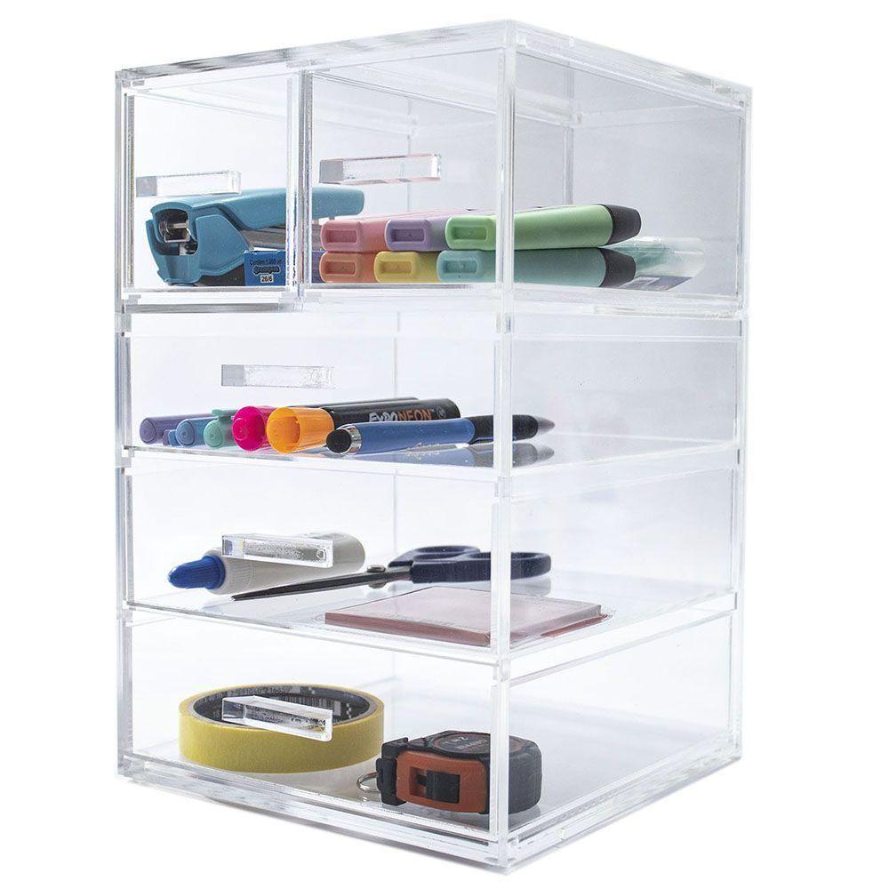 Organizador Acrílico Gaveteiro 5 Gavetas Office Ou Maquiagem