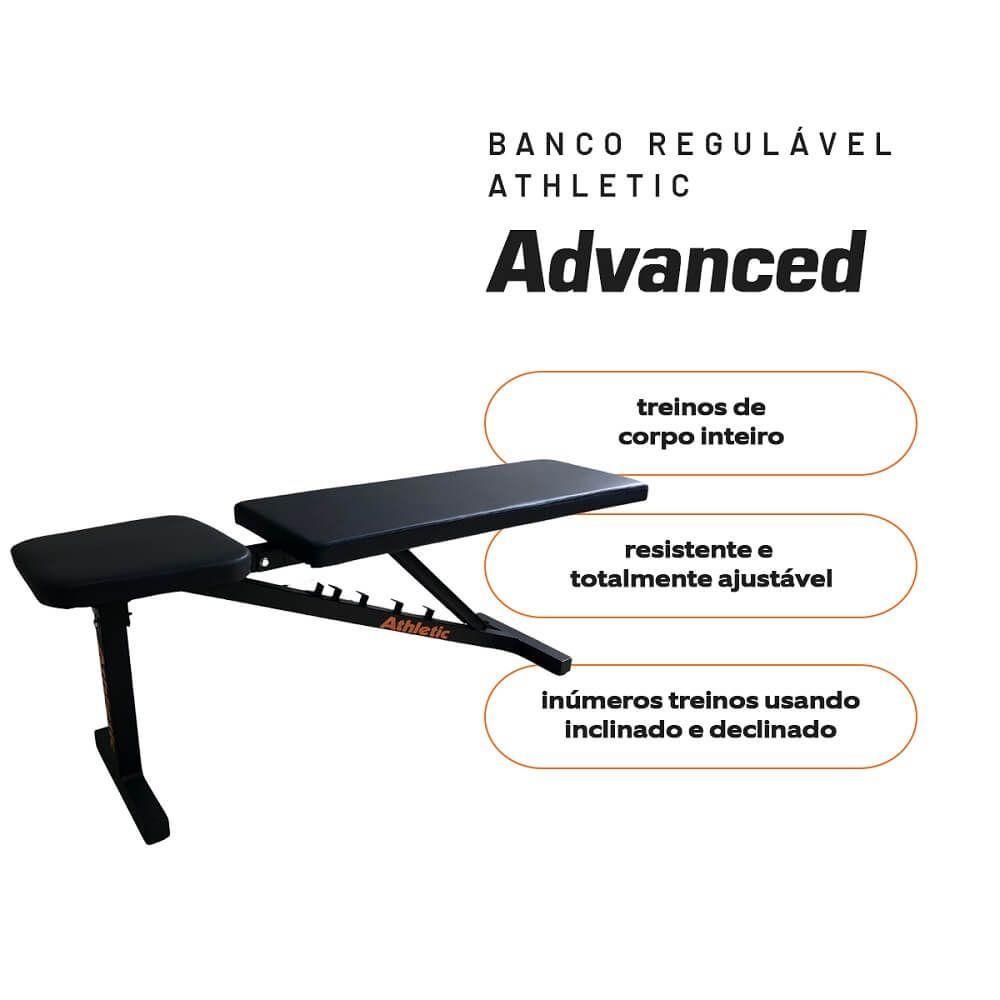 Banco Regulável Athletic Advanced 7 Níveis Reto, Inclinado, Declinado Suporta 110kg Musculação Completa Em Casa