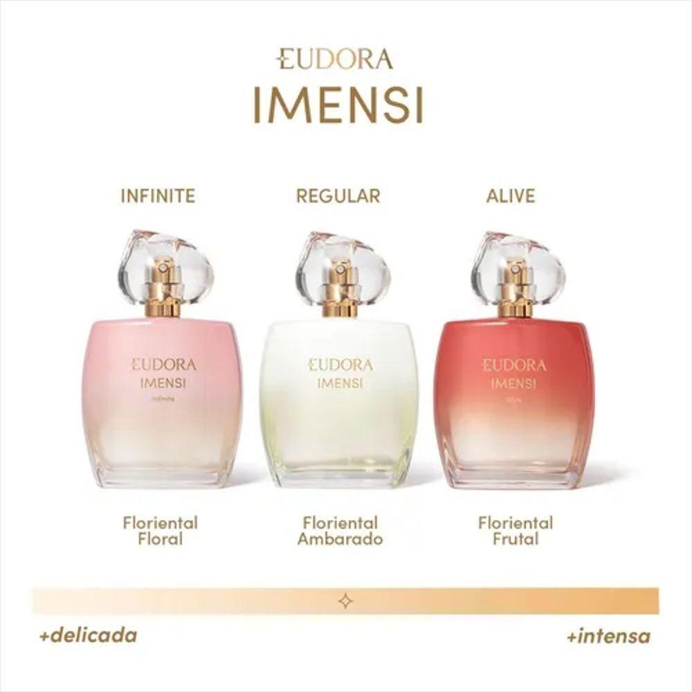 Eudora Deo Colônia Imensi Alive 100mlEudora Deo Colônia Imensi Alive 100ml - A Liberdade em Forma de FragrânciaDescubra a essência da liberdade com a Eudora Deo Colônia Imensi Alive 100ml. Esta fragrância é um convite para mulheres que desejam expressar sua força e a cada dia. Inspirada na exuberante Orquídea Tailandesa, a Imensi Alive oferece uma experiência olfativa única que combina notas frutais suculentas e um buquê floral robusto, proporcionando uma sensação de frescor e sofisticação.Ingredientes e ComposiçãoA composição da Eudora Imensi Alive é cuidadosamente elaborada para garantir uma fragrância intensa e duradoura. Entre os principais ingredientes, destacam-se:Notas de Topo: Mandarina, Pimenta Preta, Framboesa, Pêssego, Maçã e Calda de Damasco.Notas de Coração: Rosa, Gardênia, Pétalas de Jasmim, Cravo, Ylang Ylang, Flor de Laranjeira e Acorde de Orquídea Tailandesa.Notas de Fundo: Baunilha, Benjoim, Cristais de Âmbar, Cashmeran, Musks Cremosos, Cedro, Sândalo e Patchouli.Modo de UsarPara aproveitar ao máximo a Eudora Deo Colônia Imensi Alive, aplique sobre o corpo como desejar, focando em áreas como pulsos e pescoço. Para uma experiência ainda mais intensa, reaplique ao longo do dia. Mantenha o frasco bem fechado e longe da luz e do calor excessivo para preservar suas propriedades.BenefíciosCom uma fragrância da família olfativa Floriental Frutal, a Eudora Imensi Alive é perfeita para quem busca:- Durabilidade: Fragrância intensa que permanece ao longo do dia.- Versatilidade: Ideal para diversas ocasiões, do dia a dia a momentos especiais.- Conexão com a Natureza: Inspirada na beleza e liberdade da Orquídea Tailandesa.IndicaçãoA Eudora Deo Colônia Imensi Alive é ideal para mulheres que valorizam a sofisticação e desejam expressar sua liberdade de ser. É uma escolha perfeita para aquelas que buscam uma fragrância que acompanhe sua rotina, elevando sua autoestima e presença.Principais DúvidasEste produto é vegano e cruelty-free, garantindo que nenhum animal foi testado durante seu desenvolvimento. Além disso, é adequado para todos os tipos de pele. Caso ocorra qualquer irritação, recomenda-se suspender o uso imediatamente.Sobre NósNa Negabella, desde 2018, nossa missão é realçar a beleza das mulheres com produtos 100% e de alta qualidade. Oferecemos uma seleção exclusiva de itens importados com o selo de qualidade da ADIPEC. Acreditamos que cuidar da autoestima é um investimento. Caso sua compra seja um presente, não hesite em nos informar após a compra para que possamos embalar de forma especial. Venha fazer parte do nosso universo da beleza!Eudora Deo Colônia Imensi Alive 100ml - A Liberdade em Forma de FragrânciaDescubra a essência da liberdade com a Eudora Deo Colônia Imensi Alive 100ml. Esta fragrância é um convite para mulheres que desejam expressar sua força e a cada dia. Inspirada na exuberante Orquídea Tailandesa, a Imensi Alive oferece uma experiência olfativa única que combina notas frutais suculentas e um buquê floral robusto, proporcionando uma sensação de frescor e sofisticação.Ingredientes e ComposiçãoA composição da Eudora Imensi Alive é cuidadosamente elaborada para garantir uma fragrância intensa e duradoura. Entre os principais ingredientes, destacam-se:Notas de Topo: Mandarina, Pimenta Preta, Framboesa, Pêssego, Maçã e Calda de Damasco.Notas de Coração: Rosa, Gardênia, Pétalas de Jasmim, Cravo, Ylang Ylang, Flor de Laranjeira e Acorde de Orquídea Tailandesa.Notas de Fundo: Baunilha, Benjoim, Cristais de Âmbar, Cashmeran, Musks Cremosos, Cedro, Sândalo e Patchouli.Modo de UsarPara aproveitar ao máximo a Eudora Deo Colônia Imensi Alive, aplique sobre o corpo como desejar, focando em áreas como pulsos e pescoço. Para uma experiência ainda mais intensa, reaplique ao longo do dia. Mantenha o frasco bem fechado e longe da luz e do calor excessivo para preservar suas propriedades.BenefíciosCom uma fragrância da família olfativa Floriental Frutal, a Eudora Imensi Alive é perfeita para quem busca:- Durabilidade: Fragrância intensa que permanece ao longo do dia.- Versatilidade: Ideal para diversas ocasiões, do dia a dia a momentos especiais.- Conexão com a Natureza: Inspirada na beleza e liberdade da Orquídea Tailandesa.IndicaçãoA Eudora Deo Colônia Imensi Alive é ideal para mulheres que valorizam a sofisticação e desejam expressar sua liberdade de ser. É uma escolha perfeita para aquelas que buscam uma fragrância que acompanhe sua rotina, elevando sua autoestima e presença.Principais DúvidasEste produto é vegano e cruelty-free, garantindo que nenhum animal foi testado durante seu desenvolvimento. Além disso, é adequado para todos os tipos de pele. Caso ocorra qualquer irritação, recomenda-se suspender o uso imediatamente.Sobre NósNa Negabella, desde 2018, nossa missão é realçar a beleza das mulheres com produtos 100% e de alta qualidade. Oferecemos uma seleção exclusiva de itens importados com o selo de qualidade da ADIPEC. Acreditamos que cuidar da autoestima é um investimento. Caso sua compra seja um presente, não hesite em nos informar após a compra para que possamos embalar de forma especial. Venha fazer parte do nosso universo da beleza!