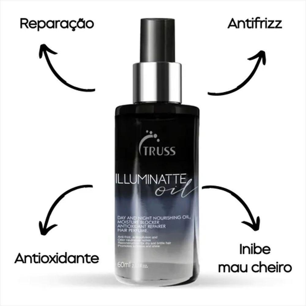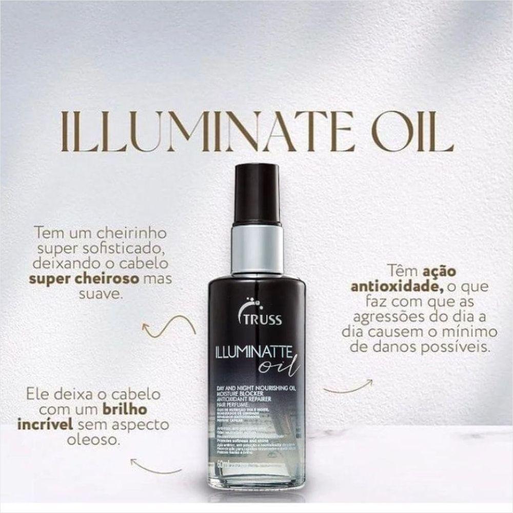 Truss Iluminatte Oil 60mlTruss Iluminatte Oil 60ml - O Poder do Brilho e Proteção para Seus FiosDescubra o Truss Iluminatte Oil, um finalizador inovador que transforma cabelos ressecados e quebradiços em madeixas saudáveis e radiantes. Com uma vegana e rica em ingredientes poderosos, este óleo capilar é a solução que você esperava para recuperar a vitalidade dos seus fios, proporcionando brilho intenso e proteção contra os danos do dia a dia.Ingredientes e ComposiçãoO Truss Iluminatte Oil é formulado com:Óleo de Amaranto: Conhecido por suas propriedades nutritivas, ajuda a restaurar a saúde dos fios e combate o ressecamento. E: Um potente antioxidante que protege os cabelos contra os danos ambientais e promove a reparação das pontas.Éster de Macadâmia: Proporciona hidratação profunda e controle do frizz, deixando os cabelos mais disciplinados e macios.Além disso, sua composição conta com ingredientes como extrato de semente de chia, que nutre e fortalece os fios, e fragrâncias florais-frutais que garantem uma perfumação duradoura.Modo de UsarPara obter os melhores resultados, aplique uma pequena quantidade do Truss Iluminatte Oil nas palmas das mãos e distribua uniformemente ao longo do comprimento e pontas dos cabelos. Para uma hidratação intensiva, aplique uma quantidade generosa à noite e lave na manhã seguinte. Experimente também durante o dia para um toque extra de brilho e proteção.BenefíciosCom o Truss Iluminatte Oil, você desfrutará de:Ação Antifrizz: Diga adeus ao frizz e tenha cabelos alinhados e com movimento.Nutrição Profunda: Fios hidratados e saudáveis, com uma aparência revitalizada.Proteção Térmica: Protege os cabelos dos danos causados pelo calor de secadores e chapinhas.Durabilidade: Efeito prolongado de brilho e suavidade, com fragrância que dura o dia todo.IndicaçãoO Truss Iluminatte Oil é ideal para quem possui cabelos ressecados e quebradiços, buscando reparação, nutrição e proteção contra os danos diários. Perfeito para todos os tipos de cabelo que necessitam de cuidados especiais e um toque de brilho.Principais DúvidasÉ para todos os tipos de cabelo? Sim! O Truss Iluminatte Oil é formulado para atender diferentes necessidades capilares, proporcionando resultados visíveis em todos os tipos de fios.Posso usar diariamente? Com certeza! Sua leve permite o uso diário, garantindo cabelos sempre bonitos e saudáveis.Sobre NósA Negabella é a sua de confiança, oferecendo produtos de beleza de alta qualidade. Trabalhamos com marcas renomadas como a Truss, sempre buscando inovação e praticidade para você. Se sua compra for um presente, não se preocupe! Podemos enviar a embalagem especial, basta nos informar após a compra. Não perca a oportunidade de transformar seus cabelos com o Truss Iluminatte Oil.Truss Iluminatte Oil 60ml - O Poder do Brilho e Proteção para Seus FiosDescubra o Truss Iluminatte Oil, um finalizador inovador que transforma cabelos ressecados e quebradiços em madeixas saudáveis e radiantes. Com uma vegana e rica em ingredientes poderosos, este óleo capilar é a solução que você esperava para recuperar a vitalidade dos seus fios, proporcionando brilho intenso e proteção contra os danos do dia a dia.Ingredientes e ComposiçãoO Truss Iluminatte Oil é formulado com:Óleo de Amaranto: Conhecido por suas propriedades nutritivas, ajuda a restaurar a saúde dos fios e combate o ressecamento. E: Um potente antioxidante que protege os cabelos contra os danos ambientais e promove a reparação das pontas.Éster de Macadâmia: Proporciona hidratação profunda e controle do frizz, deixando os cabelos mais disciplinados e macios.Além disso, sua composição conta com ingredientes como extrato de semente de chia, que nutre e fortalece os fios, e fragrâncias florais-frutais que garantem uma perfumação duradoura.Modo de UsarPara obter os melhores resultados, aplique uma pequena quantidade do Truss Iluminatte Oil nas palmas das mãos e distribua uniformemente ao longo do comprimento e pontas dos cabelos. Para uma hidratação intensiva, aplique uma quantidade generosa à noite e lave na manhã seguinte. Experimente também durante o dia para um toque extra de brilho e proteção.BenefíciosCom o Truss Iluminatte Oil, você desfrutará de:Ação Antifrizz: Diga adeus ao frizz e tenha cabelos alinhados e com movimento.Nutrição Profunda: Fios hidratados e saudáveis, com uma aparência revitalizada.Proteção Térmica: Protege os cabelos dos danos causados pelo calor de secadores e chapinhas.Durabilidade: Efeito prolongado de brilho e suavidade, com fragrância que dura o dia todo.IndicaçãoO Truss Iluminatte Oil é ideal para quem possui cabelos ressecados e quebradiços, buscando reparação, nutrição e proteção contra os danos diários. Perfeito para todos os tipos de cabelo que necessitam de cuidados especiais e um toque de brilho.Principais DúvidasÉ para todos os tipos de cabelo? Sim! O Truss Iluminatte Oil é formulado para atender diferentes necessidades capilares, proporcionando resultados visíveis em todos os tipos de fios.Posso usar diariamente? Com certeza! Sua leve permite o uso diário, garantindo cabelos sempre bonitos e saudáveis.Sobre NósA Negabella é a sua de confiança, oferecendo produtos de beleza de alta qualidade. Trabalhamos com marcas renomadas como a Truss, sempre buscando inovação e praticidade para você. Se sua compra for um presente, não se preocupe! Podemos enviar a embalagem especial, basta nos informar após a compra. Não perca a oportunidade de transformar seus cabelos com o Truss Iluminatte Oil.