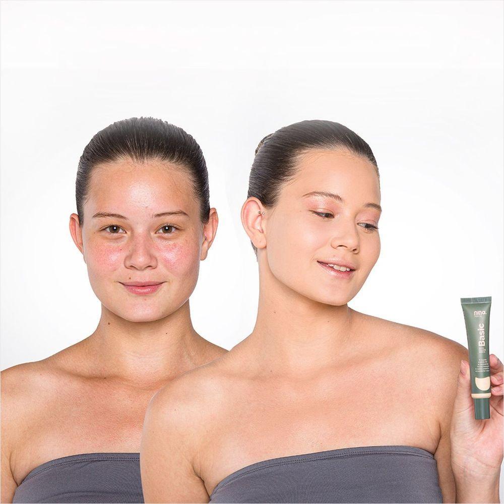 Kit Nina Makeup Base Líquida Basic+pó Solto Instant Cor 1