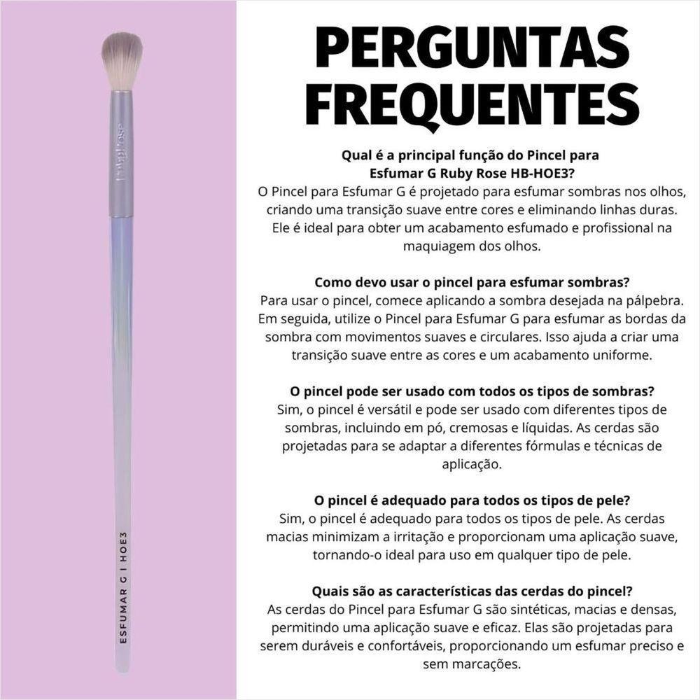 Ruby Rose Pincel Esfumar G Holographic Hbhoe3Ruby Rose Pincel Esfumar G Holographic HBHOE3 - O Segredo para um Olhar Hipnotizante!Descubra o poder do Ruby Rose Pincel Esfumar G Holographic HBHOE3, a ferramenta indispensável que eleva a sua maquiagem a outro nível. Com suas cerdas macias e design holográfico, esse pincel é perfeito para esfumados impecáveis que realçam a beleza dos seus olhos. Chegou a hora de conquistar o olhar dos seus sonhos!O pincel conta com um cabo ergonomicamente projetado, proporcionando uma pegada confortável e controle absoluto durante a aplicação. Suas cerdas sintéticas de alta qualidade garantem um esfumado uniforme e sem falhas, permitindo que você crie desde looks sutis até produções mais ousadas com facilidade e precisão.Ingredientes e Composição:O Ruby Rose Pincel Esfumar G Holographic HBHOE3 é composto por:Cerdas Sintéticas: macias, duráveis e livres de crueldade animal, que garantem uma aplicação suave e eficaz.Cabo de Madeira: com acabamento holográfico, oferece resistência e um toque de glamour ao seu kit de maquiagem.Modo de Usar:Para obter o melhor desempenho do seu pincel, siga estas dicas:Aplique sua sombra preferida na pálpebra.Utilize o Ruby Rose Pincel Esfumar G para esfumar as bordas com movimentos suaves e circulares.Para um acabamento ainda mais , experimente usar diferentes tons para criar profundidade.Benefícios:Esfumado Perfeito: com cerdas projetadas para suavizar contornos.Durabilidade: feito com materiais de qualidade que garantem resistência e longa vida útil.Fácil Manuseio: o design ergonômico permite que até iniciantes consigam resultados de maquiadores profissionais.Indicação:Ideal para maquiadores amadores e profissionais, o Ruby Rose Pincel Esfumar G é perfeito para quem deseja praticidade e eficácia na maquiagem. Se você adora realçar seus olhos, este pincel se tornará seu melhor amigo, simplificando sua rotina de beleza!Principais Dúvidas:Posso lavá-lo? Sim! Mantenha seu pincel sempre limpo usando água morna e sabonete neutro após cada uso.Pode ser com qualquer tipo de sombra? Perfeitamente! Funciona maravilhas com sombras em pó, cremosas e até líquidas.Sobre Nós:A Negabella é reconhecida pela sua qualidade e compromisso em oferecer produtos que atendem às necessidades dos nossos clientes. Cada item é selecionado com carinho, garantindo que você tenha a melhor experiência possível. Se sua compra for um presente especial, não se preocupe! Basta nos informar após a compra e enviaremos em uma embalagem sofisticada, pronta para encantar!Renove sua maquiagem com o Ruby Rose Pincel Esfumar G Holographic HBHOE3 e experimente a transformação que faltava no seu olhar. Adquira já o seu e faça da sua maquiagem uma verdadeira obra de arte!Ruby Rose Pincel Esfumar G Holographic HBHOE3 - O Segredo para um Olhar Hipnotizante!Descubra o poder do Ruby Rose Pincel Esfumar G Holographic HBHOE3, a ferramenta indispensável que eleva a sua maquiagem a outro nível. Com suas cerdas macias e design holográfico, esse pincel é perfeito para esfumados impecáveis que realçam a beleza dos seus olhos. Chegou a hora de conquistar o olhar dos seus sonhos!O pincel conta com um cabo ergonomicamente projetado, proporcionando uma pegada confortável e controle absoluto durante a aplicação. Suas cerdas sintéticas de alta qualidade garantem um esfumado uniforme e sem falhas, permitindo que você crie desde looks sutis até produções mais ousadas com facilidade e precisão.Ingredientes e Composição:O Ruby Rose Pincel Esfumar G Holographic HBHOE3 é composto por:Cerdas Sintéticas: macias, duráveis e livres de crueldade animal, que garantem uma aplicação suave e eficaz.Cabo de Madeira: com acabamento holográfico, oferece resistência e um toque de glamour ao seu kit de maquiagem.Modo de Usar:Para obter o melhor desempenho do seu pincel, siga estas dicas:Aplique sua sombra preferida na pálpebra.Utilize o Ruby Rose Pincel Esfumar G para esfumar as bordas com movimentos suaves e circulares.Para um acabamento ainda mais , experimente usar diferentes tons para criar profundidade.Benefícios:Esfumado Perfeito: com cerdas projetadas para suavizar contornos.Durabilidade: feito com materiais de qualidade que garantem resistência e longa vida útil.Fácil Manuseio: o design ergonômico permite que até iniciantes consigam resultados de maquiadores profissionais.Indicação:Ideal para maquiadores amadores e profissionais, o Ruby Rose Pincel Esfumar G é perfeito para quem deseja praticidade e eficácia na maquiagem. Se você adora realçar seus olhos, este pincel se tornará seu melhor amigo, simplificando sua rotina de beleza!Principais Dúvidas:Posso lavá-lo? Sim! Mantenha seu pincel sempre limpo usando água morna e sabonete neutro após cada uso.Pode ser com qualquer tipo de sombra? Perfeitamente! Funciona maravilhas com sombras em pó, cremosas e até líquidas.Sobre Nós:A Negabella é reconhecida pela sua qualidade e compromisso em oferecer produtos que atendem às necessidades dos nossos clientes. Cada item é selecionado com carinho, garantindo que você tenha a melhor experiência possível. Se sua compra for um presente especial, não se preocupe! Basta nos informar após a compra e enviaremos em uma embalagem sofisticada, pronta para encantar!Renove sua maquiagem com o Ruby Rose Pincel Esfumar G Holographic HBHOE3 e experimente a transformação que faltava no seu olhar. Adquira já o seu e faça da sua maquiagem uma verdadeira obra de arte!