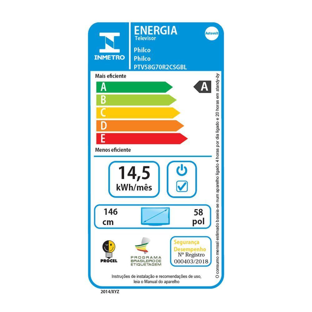 Smart TV 58" Philco LED 4K Roku Dolby Áudio PTV58G70R2CSGBL Bivolt Com a Smart TV 58” Philco 4K LED PTV58G70R2CSGBL Roku Dolby Audio, você assiste aos seus programas preferidos com qualidade, tecnologia e muito conforto. A Smart TV Philco de 58 polegadas permite a conexão dos seus dispositivos favoritos, além de conexão à internet sem a necessidade de cabos, proporcionando mais praticidade no seu dia a dia.Aproveite a incrível qualidade de som da Smart TV Philco com Dolby Audio, garantindo uma experiência sonora imersiva. Conecte sua TV Philco à internet e tenha acesso a mais de 100.000 filmes e episódios de TV em canais como Netflix, Globoplay, Telecine e muito mais!Com a Smart TV Philco de 58 polegadas, você pode assistir, jogar, navegar e explorar todo o potencial da resolução 4K UHD e do processador Quad Core, que garantem cores vibrantes, imagens nítidas e respostas rápidas aos comandos.Quer tecnologia com alta performance para desfrutar momentos aconchegantes com a família? Conte com a Smart TV 58” Philco 4K LED PTV58G70R2CSGBL Roku Dolby Audio, um aparelho mais que completo para você!Principais Características:- Dolby Audio: Qualidade de som garantida- Resolução 4K UHD: Permite um melhor detalhamento das imagens- Busca inteligente: Encontre facilmente o conteúdo que precisaMarca: PhilcoModelo: PTV58G70R2CSGBLSistema Operacional: Roku TvCor: Space GrayProcessador: Quad CoreConversor digital integrado: SimPotência (W): 119 WAlimentação de energia: AC 100-240V ~ 50/60HzConsumo médio (kW/h): 0,5Controle Remoto: SimCabo de força: SimManual de instruções: SimBase (Pés): SimWifi: SimLoja de Aplicativos: SimNavegador (Web Browser): NãoSmart TV: SimBluetooth: NãoEspelhamento de tela: MidiacastAplicativos instalados: Netflix Youtube Prime Vídeo Disney+Conexão com Alexa: SimGoogle Assistente: SimÂngulo de Visão: 170°Padrão de Imagem: PAL-M, PAL-N, NTSCFrequência do Painel: 60 HzFormato de tela: 16:9Tipo de Painel: LDC/LEDTamanho da tela: 58DTV: SimResolução: 4K (UHD) TVHDR: SimDolby vision: NãoDolby Audio: SimDolby atmos: NãoCanais: 2.0Surround sound: SimEqualização de Som: SimPotência do alto-falante: 12Wrms x 2Reprodutor de áudio Bluetooth: NãoDescrição desktop:Descrição mobile:Wi-Fi Direct: NãoEntrada HDMI: 4Entrada USB: 2Entrada (AV): SimEntrada P2: 1Entrada de vídeo e áudio estéreo (RCA): SimEthernet (LAN): 1Saída Digital Óptica: 1Ambiente: Sala de estarResolução: 4KRecursos Adicionais: Dolby Audio WIFI integrado Roku TV Google Assistente Midiacast HDRHomologação Anatel: 15772211928Garantia (Dias): 360Observação: Somente faturamos para o nosso consumidor final, ou seja, não faturamos pedidos para CNPJ por este portal de vendas;