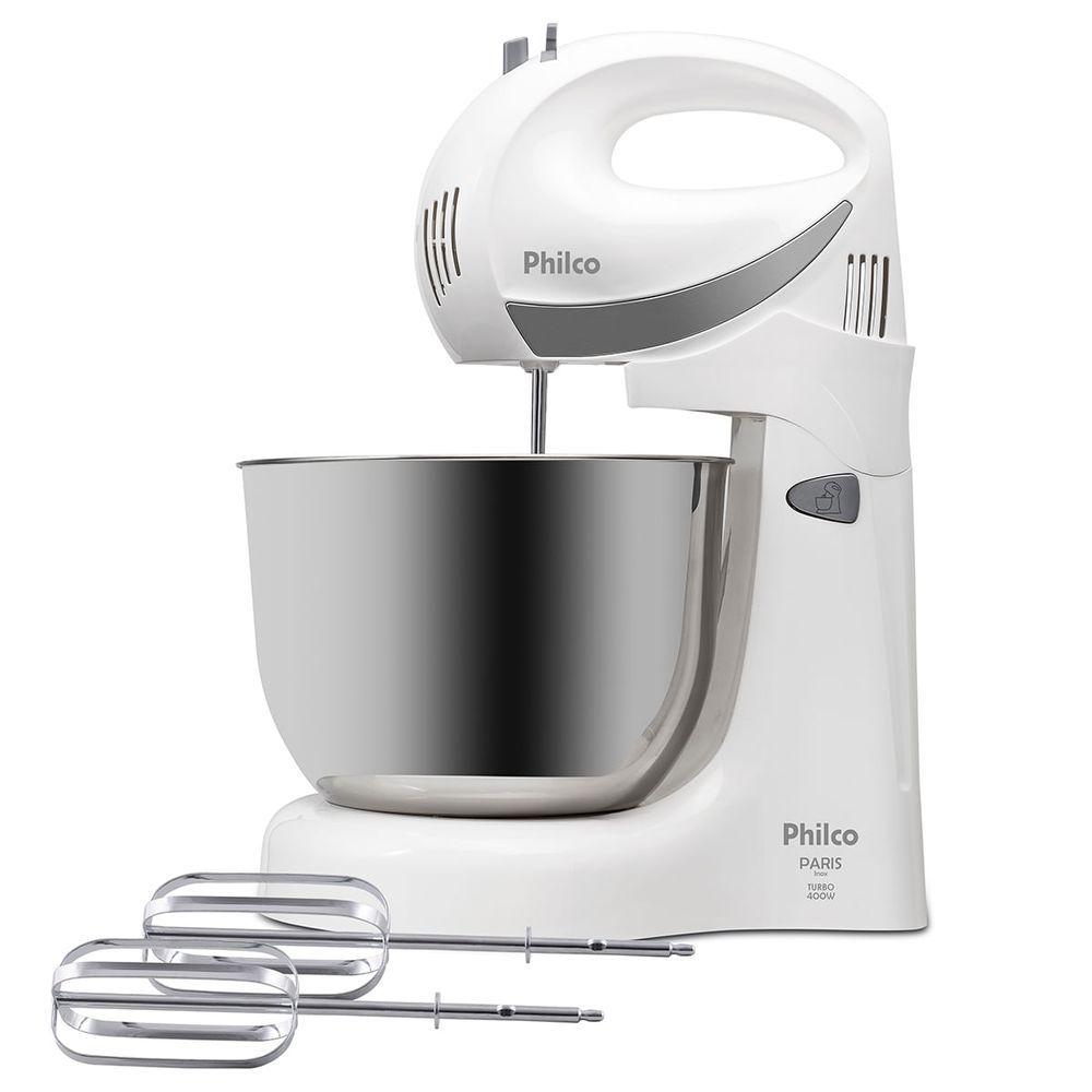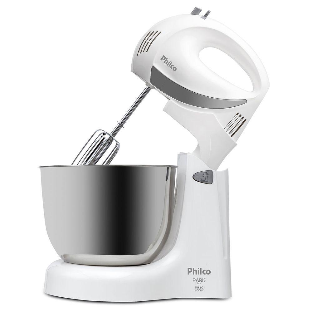 Batedeira Philco Paris Inox Branca 400W 110VUm pedaço de bolo, um sorriso, um dia mais feliz! E para te auxiliar nisso: Batedeira Philco Paris Inox Branca!Conta com 4 velocidades, mais botão turbo, para você fazer receitas de arrasar. Tigela em inox com capacidade para 4 litros, ideal para você preparar em grandes quantidades. Possui batedores em aço inox para massas leves, trazendo muito mais durabilidade. Muito prática, pois possibilita retirar a batedeira da base para uso como portátil. Com plataforma basculante que facilita no acréscimo dos ingredientes e na movimentação da tigela.- Maior potência – 400W- 4 velocidades + botão Turbo- 1 tigela grande em Inox com capacidade para 4L- Batedores em aço inox para massas leves - Botão ejetor dos batedores- Unidade motora pode ser usada fora da base (pode ser usada como portátil);Especificações Técnicas:Marca: PhilcoModelo: Paris InoxEstado: NovoCor: BrancoTigela extra: NãoCapacidade da tigela (L): 4Capacidade da tigela extra (L): Não temPotência (W): 400Velocidades: 4Garantia (Dias): 360Observação: Somente faturamos para o nosso consumidor final, ou seja, não faturamos pedidos para CNPJ por este portal de vendas;