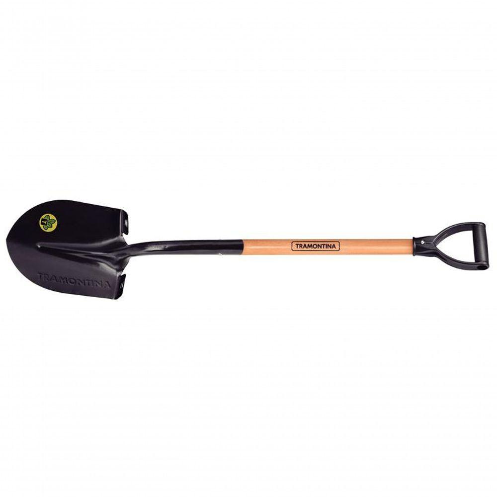 Pá De Bico Tramontina Pesada Em Aço Com Cabo De Madeira 71cm 416/20A pá de bico Tramontina 416/20 em aço com cabo de madeira 71 cm com empunhadura plástica reta ergonômica é a escolha ideal para quem busca desempenho e conforto nas tarefas do dia a dia. Indicada para uso na agricultura, jardinagem e construção civil, ela é produzida em aço carbono temperado e cortada a laser, o que garante excelente resistência e durabilidade. Conta com pintura eletrostática a pó, que protege contra oxidação e aumenta a vida útil da peça. Seu cabo de 71 centímetros em madeira envernizada possui empunhadura plástica com design ergonômico, oferecendo um manuseio mais confortável e eficiente.Recomendações de Uso:Modo de uso: Utilizada na agricultura, jardinagem e construção civil, para juntar ou carregar materiais diversos. ;Para descarte dos produtos e embalagens siga as orientações de reciclagem vigentes.- Foto meramente ilustrativa.Informações Adicionais:- Possui empunhadura plástica ergonômica;- A pá é fabricada em aço carbono especial de alta qualidade, cortada a laser;- É temperada em todo o corpo da peça, proporcionando maior ;resistência e menor desgaste durante o uso;- Recebe pintura eletrostática a pó, que tem uma melhor apresentação visual e maior proteção contra oxidação;- A tinta utilizada na pintura é isenta de metais pesados na sua composição, o que minimiza o impacto ambiental;- O cabo de 71 cm desta ferramenta, além de possuir ótima resistência, é produzido com madeira de origem renovável;- Cabo com acabamento envernizado, para um melhor acabamento e apresentação do produto. A camada protetora em verniz incolor realça sua tonalidade, concedendo brilho e um toque mais liso ao produto.