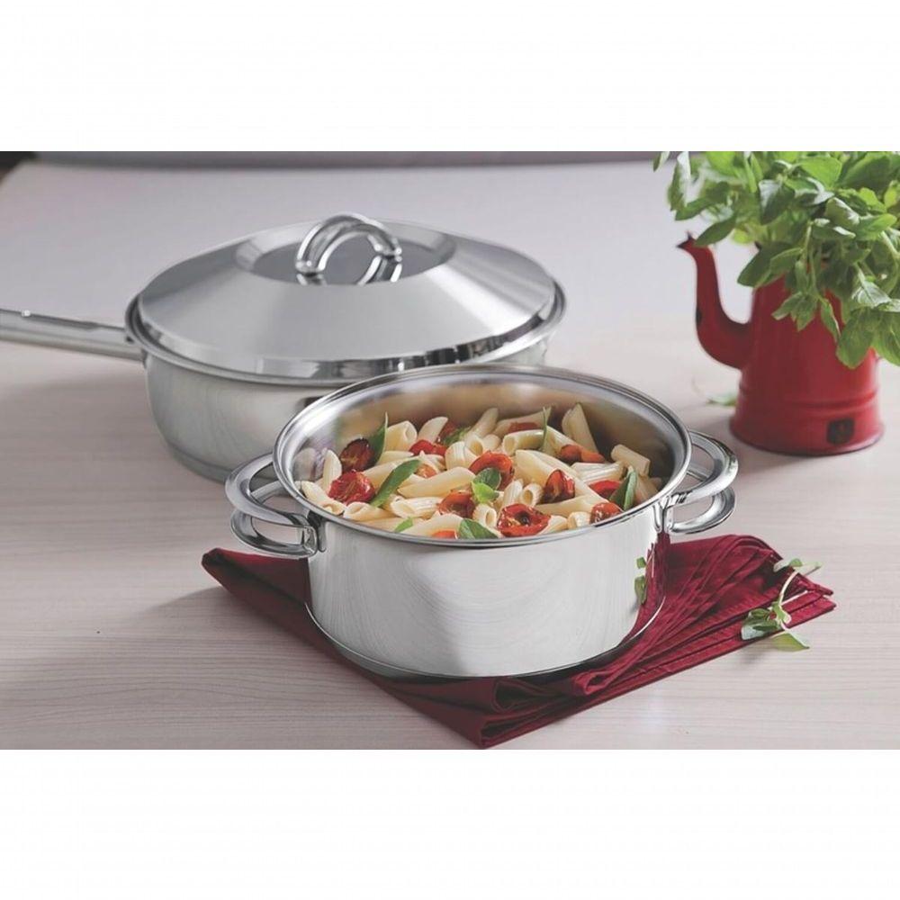 Frigideira Tramontina Solar 20cm Em Aço InoxA Tramontina usa a mais alta tecnologia para produzir panelas de aço inox com fundo triplo. São duas camadas de aço inox envolvendo uma camada de alumínio. Dessa forma, o calor da chama se distribui por igual, deixando os alimentos muito mais macios e saborosos. Além disso a comida cozinha muito mais rápido, o que acaba gerando economia.Recomendações de Uso:Antes do uso: Antes de utilizar o produto novo, remova as eventuais etiquetas e lave-o com água quente e detergente.Modo de uso: Alguns alimentos que possuem amido, como massa e arroz, poderão deixar manchas na parte interna do cozi-vapore durante o cozimento.Após o uso: Para remover facilmente as manchas, passe um pano umedecido com suco de limão ou vinagre, Evite deixar alimento no cozi-vapore por muito tempo o sal também pode provocar manchas. Para que o cozi-vapore de aço inox fique sempre bonita e com brilho, recomendamos que seja lavada somente com detergente e esponja. A Tramontina desenvolveu uma pasta especial para polir e remover manchas nos produtos de aço inoxidável, que está disponível nos principais pontos de venda. (94537000)Depois da lavagem, sempre que possível, enxágue o cozi-vapore com água quente e seque-a imediatamente, para que ela mantenha o brilho original, pois o cloro e as substâncias contidas na água podem deixar manchas no cozi-vapore. Não deixe o cozi-vapore vazia sobre uma fonte de calor. Deixe o cozi-vapore quente somente em superfícies resistentes ao calor.- Foto meramente ilustrativa- Embalagem litografadaInformações Adicionais:- Totalmente feita de aço inox, por isso não solta nenhum resíduo nos alimentos, mantendo-os saudáveis. - Altamente durável, mantém as características originais, preservando a beleza, a higiene e a durabilidade do material.- O fundo triplo (aço inox + alumínio + aço inox) das panelas distribui o calor uniformemente, proporcionando um cozimento mais rápido e uniforme, economizando energia, deixando os alimentos macios, saborosos e aquecidos por mais tempo.- Possui design diferenciado e moderno, com acabamento em alto brilho. - Desenho limpo e sem cantos torna a limpeza mais fácil. - Possui tampa com saída de vapor e encaixe perfeito. - Pode ser lavada diariamente na máquina de lavar louças.