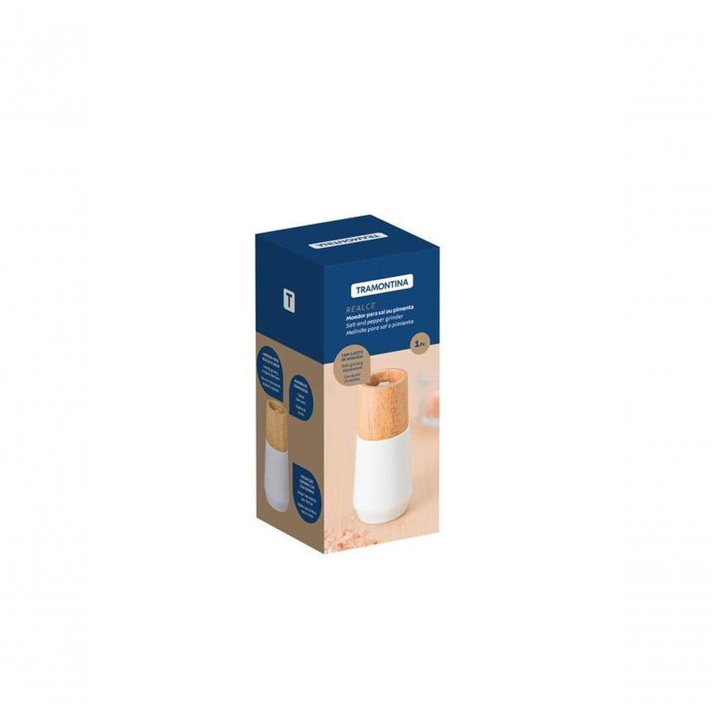 Moedor Tramontina De Sal E Pimenta Realce 12,7cm Branco Em Madeira SeringueiraEm um tom branco que leva leveza e frescor para a cozinha, o moedor de sal e pimenta Tramontina Realce em madeira de seringueira, com 12,7 cm, é daqueles itens que fazem a diferença tanto no preparo quanto na apresentação dos pratos. Compacto e funcional, comporta até 25 g de sal grosso ou 10 g de pimenta, com ajuste de moagem que permite escolher a intensidade ideal para cada receita. Suas engrenagens robustas garantem um uso confiável no dia a dia, enquanto o acabamento clean combina com diferentes estilos de decoração e momentos à mesa.Recomendações de Uso:Modo de Uso: ;Uso seguro e adequado: Tenha cuidado ao manusear o produto, poderá quebrar ao sofrer quedas ou impactos. Ao usar o moedor com sal em ambientes muito úmidos, ele poderá não funcionar adequadamente; recomendamos trocar ou secar o sal. Não lavar o moedor; para limpeza, use um pano úmido na parte externa. Para descarte dos produtos e embalagens, siga as orientações de reciclagem vigentes. Tampa removível Compartimento de grãos Sistema de moagem Ajuste de moagem Para regular o tamanho do grão: Com uma das mãos segure o compartimento de grãos e com a outra gire/desrosqueie o suporte de regulagem. Para uma moagem fina, gire o suporte de regulagem no sentido horário. Para uma moagem mais grossa, gire o suporte de regulagem no sentido anti-horário. Para abastecer: Retire a tampa do compartimento de grãos, removendo totalmente o suporte de regulagem, girando-o no sentido anti-horário, e puxe a tampa. Após isso, adicione o grão a ser moído. Para moer: Com o moedor na posição correta, segure o compartimento de grãos com uma das mãos e com a outra gire a tampa no sentido horário, para moer o tempero. Atenção: Certifique-se de girar a tampa no sentido horário ao moer, para evitar possíveis danos. Se o moedor ficar preso durante o uso, agite suavemente o moinho de sal/pimenta, pois às vezes algum grão pode entupir o moedor, se você forçar o uso, talvez possa quebrar o moedor. Se o problema persistir, vire o moedor ao contrário, girando-o duas ou três vezes para que o grão preso no moedor volte para o compartimento e libere sua regulagem.- Foto meramente ilustrativa.Informações Adicionais:- Capacidade para sal de 25 gramas e pimenta de 10 gramas;- Possui engrenagem de alta resistência, proporcionando maior durabilidade;- Moedor em madeira seringueira com pino regulador de tamanho de grão, para que seja ajustado conforme seu gosto.