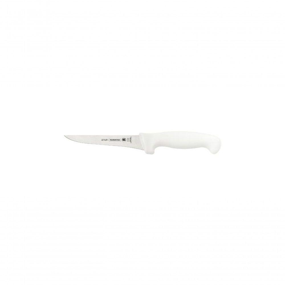Faca Para Desossar 5" Tramontina Profissional Com Lâmina Em Aço Inox E Cabo De Polipropileno BrancoFacilite a desossa e o corte de carnes com a faca para desossar Tramontina Profissional 5 polegadas. Com lâmina em aço inox de alta resistência e cabo de polipropileno branco, ela oferece cortes precisos e um manuseio seguro e confortável. Projetada para garantir eficiência e qualidade, essa faca é indispensável para tornar suas tarefas na cozinha mais ágeis e precisas.Recomendações de Uso:Antes do uso: Antes de utilizar o produto novo, remova as eventuais etiquetas e lave-o com água quente e detergente.Modo de uso:Durante a lavagem use somente esponja macia, outros tipos de produtos, como palha de aço, poderão riscar ou prejudicar o brilho do aço inox. Enxágue bem a peça a fim de remover totalmente os resíduos dos produtos de limpeza, que por serem abrasivos, podem danificar o inox. Após a lavagem enxugue a faca, pois as substâncias químicas contidas na água poderão causar manchas. Sempre que possível use água quente, pois renova o brilho do talher. Evite o contato das peças com superfícies quentes, pois podem provocar a descoloração do produto. Quando usar a máquina de lavar louça, recomendamos retirar o talher logo que tenha terminado o ciclo enxaguar, a fim de que os mesmos sejam secados manualmente.- Tenha cuidado ao Manusear produtos cortantes e perfurantes e mantenha-os fora do alcance de crianças.- Foto meramente ilustrativa.Informações Adicionais:- Lâmina fabricada em aço inox de altíssima qualidade, que aliado ao eficiente tratamento térmico sub-zero, confere à faca grande resistência ao desgaste do fio.- Cabo de polipropileno com proteção antibacteriana, que inibe e reduz o crescimento de bactérias gram-positivas e fungos. Isso significa um produto mais limpo por mais tempo, trazendo benefícios em higiene e redução na população de microorganismos que causam contaminação. A tecnologia antibacteriana é incorporada durante o processo de fabricação dos produtos, na injeção dos cabos, e dura por toda a vida útil dos mesmos.- A lâmina com desbaste em V assegura um corte preciso e um excelente rendimento, mesmo depois de muitas afiações.- Certificado Internacional de Qualidade e Excelência: desde que a Tramontina obteve a certificação NSF (National Sanitation Fundation), vem utilizando junto à sua marca essa simbologia, que representa o reconhecimento de uma organização internacional e independente à linha de Facas Profissionais Tramontina.- Para evitar a formação de folgas ou frestas entre as partes e a retenção de resíduos, além de facilitar a limpeza, o cabo é injetado diretamente sobre a espiga da própria lâmina.