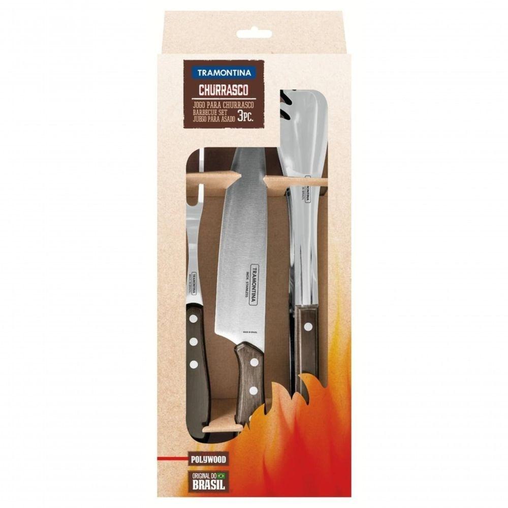 Jogo De Churrasco Tramontina Polywood Castanho 3 Peças