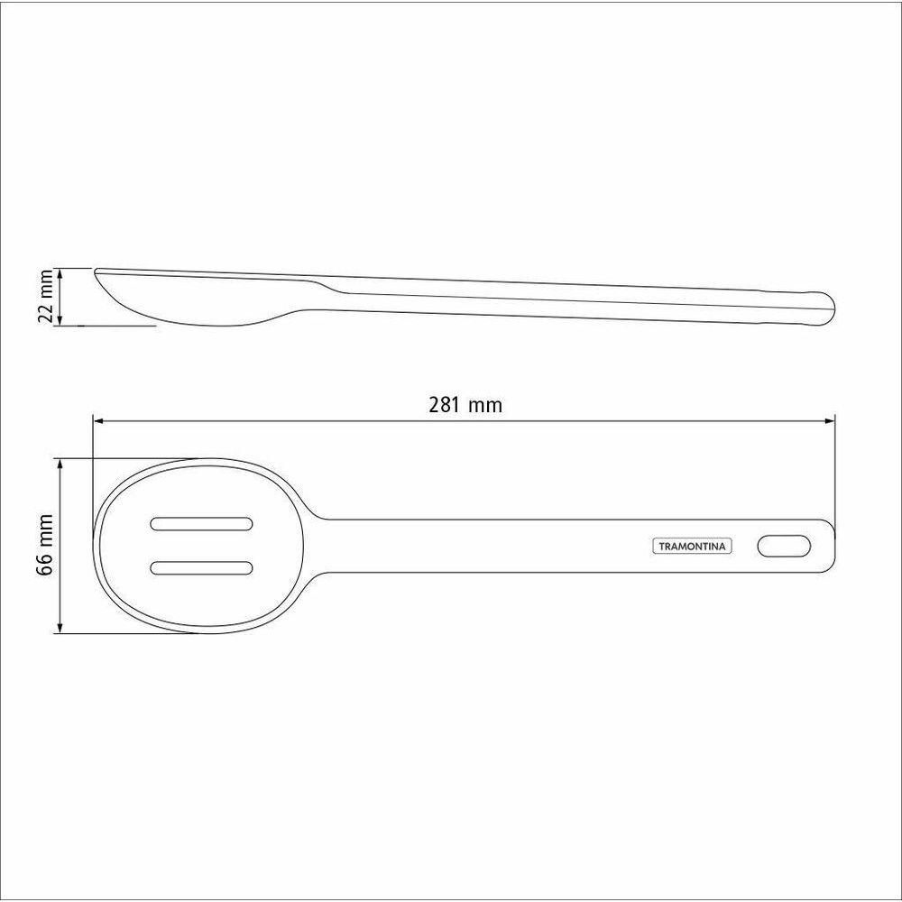 Colher De Servir Perfurada Em Silicone Tramontina Moldê CinzaA colher de servir perfurada Tramontina Moldê em silicone cinza é a escolha perfeita para fazer parte das suas refeições e serví-las com muito mais estilo. Desenvolvida em nylon na cor cinza, ela proporciona flexibilidade, resistência e suporta temperaturas de até 180 °C. Você pode utilizá-la em superfícies antiaderentes e cerâmicas sem medo, pois não as danifica. Ela pode ainda ser levada à máquina de lavar louças e vai otimizar ainda mais suas tarefas na cozinha!Recomendações de Uso:Antes do Uso: Antes da primeira utilização, lave bem a peça e seque-a. ;Modo de Uso: Não utilizar esponja abrasiva para limpeza e para maior durabilidade do produto recomenda-se secar bem antes de guardar, mesmo após lavagem em máquina.O produto pode sofrer alterações no aspecto visual ao longo do uso, em virtude da pigmentação dos alimentos e degradação natural da cor do utensílio. ;Não deixar o utensílio em superfícies quentes por tempo prolongado.Não armazenar o utensílio junto a materiais cortantes e perfurantes.Para descarte do produto e embalagem siga as orientações de reciclagem vigentes.Informações Adicionais:Pode ir à máquina de lavar louças facilitando seu dia a dia;Colher de silicone, que resiste até uma temperatura de 180 °C;Com furo passante no cabo possibilitando que seja pendurado na sua cozinha;Utensílio ideal para uso em panelas com revestimentos antiaderentes e cerâmicos, pois não danifica o produto. ;