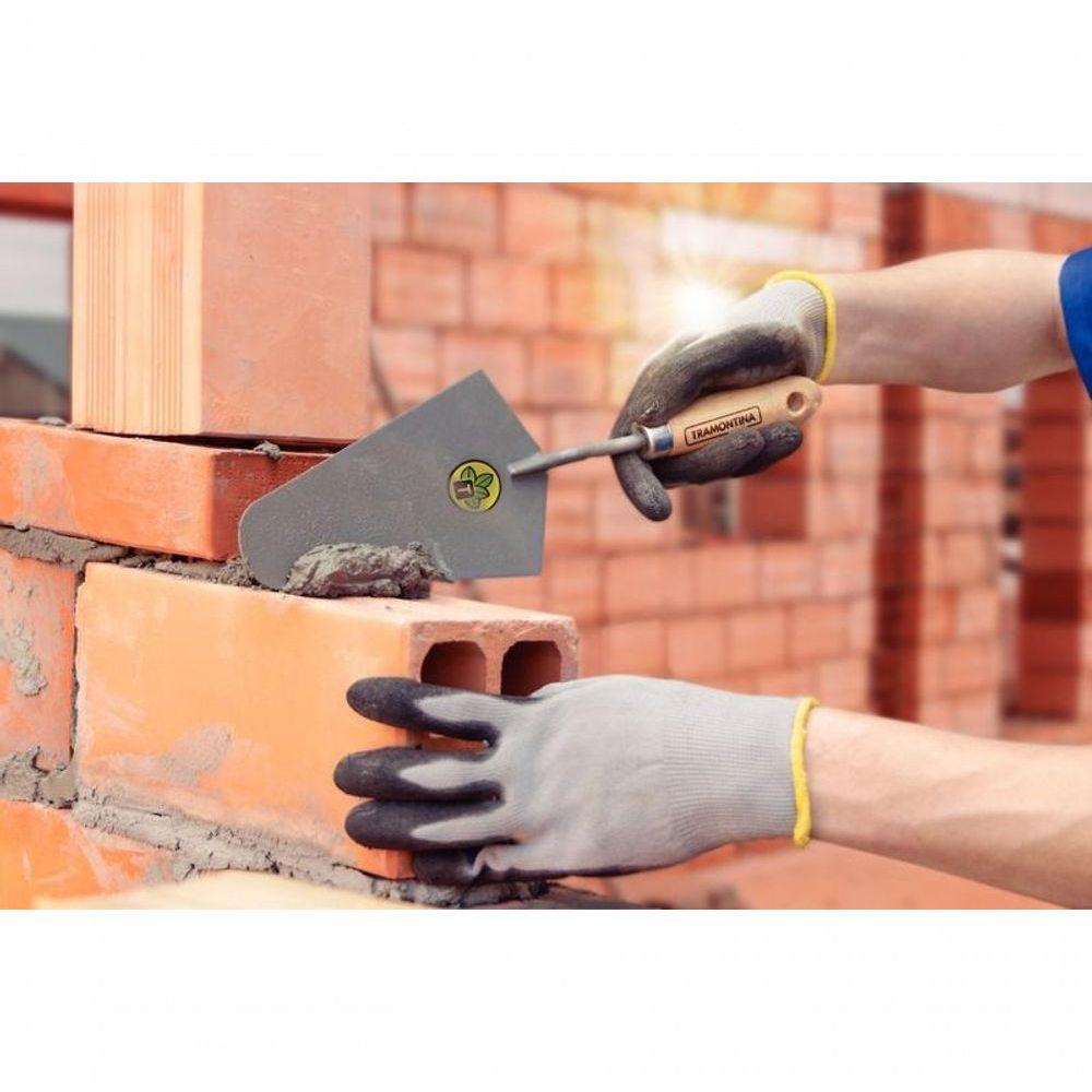 Colher De Pedreiro Tramontina 7" Em Aço Cabo De MadeiraA colher de pedreiro 7" Tramontina em aço com cabo de madeira é a aliada ideal para quem busca eficiência e durabilidade em construções e reformas. Com lâmina de 7 polegadas em aço especial e corpo totalmente temperado, ela oferece alta resistência e menor desgaste durante o uso. Seu cabo de madeira envernizado garante um toque mais confortável e acabamento de qualidade. Uma ferramenta robusta e confiável, feita com a excelência que só a Tramontina proporciona.Recomendações de Uso:Modo de uso: Serve ;para quebrar e assentar tijolos, aplicar argamassa ou qualquer outra mistura utilizada na construção. ;Para descarte dos produtos e embalagens siga as orientações de reciclagem vigentes.- Foto meramente ilustrativa.Informações Adicionais:- Lâmina com tamanho 7";- Fabricada em aço carbono especial de alta qualidade;- A guarnição metálica protege o cabo contra rachaduras e desgastes;- O cabo desta ferramenta, além de possuir ótima resistência, é produzido com madeira de origem renovável;- Para deixar a ferramenta com alta qualidade e ótimo acabamento, a haste é soldada através do processo TIG;- Recebe pintura eletrostática a pó, que tem uma melhor apresentação visual e maior proteção contra oxidação;- A colher é temperada em todo o corpo da peça, proporcionando maior resistência e menor desgaste durante o uso;- Cabo com acabamento envernizado, para um melhor acabamento e apresentação do produto. A camada protetora em verniz incolor realça sua tonalidade, concedendo brilho e um toque mais liso ao produto.