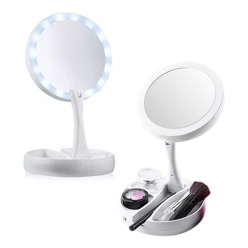 Espelho De Led Dobravel Aumenta 10x Maquiagem Original Luxo