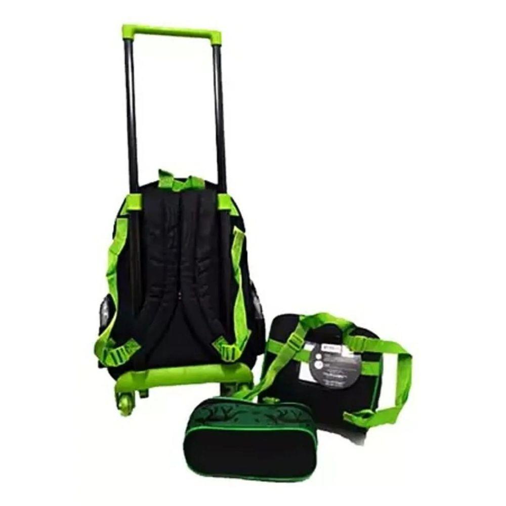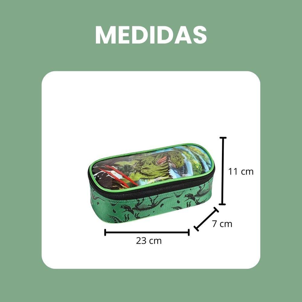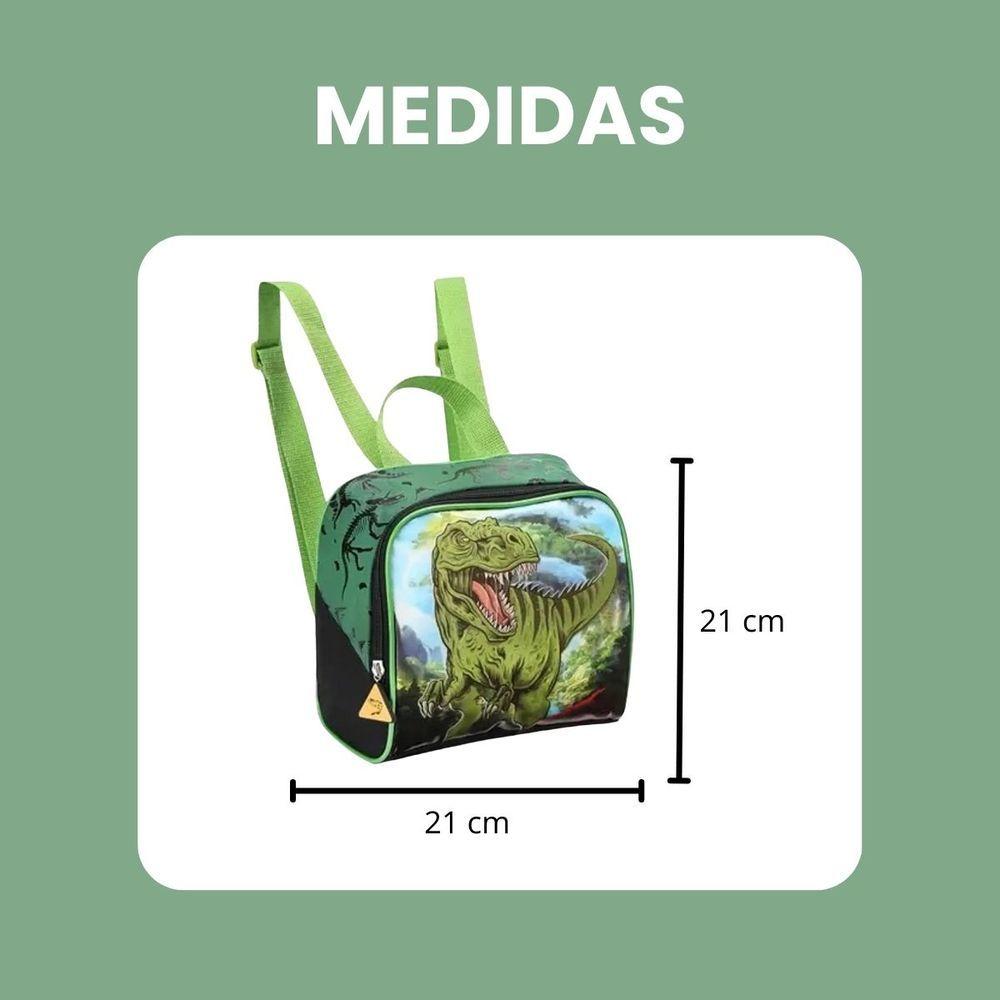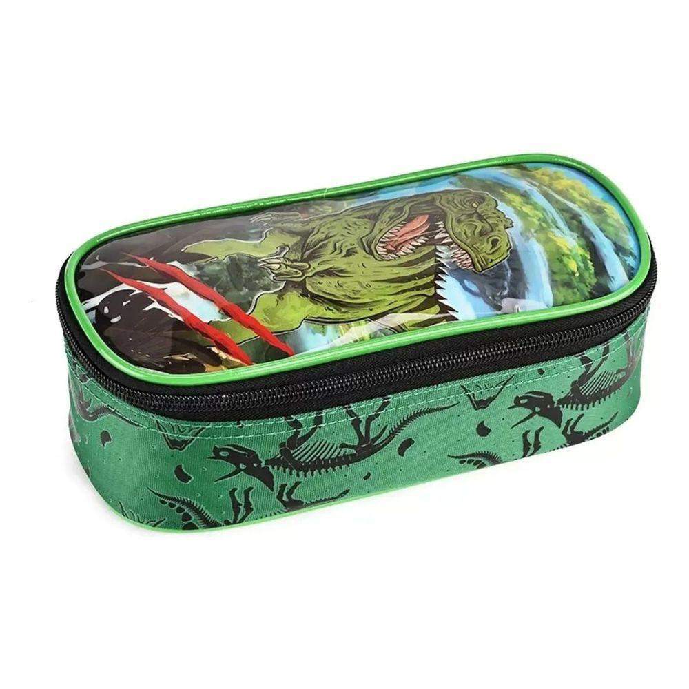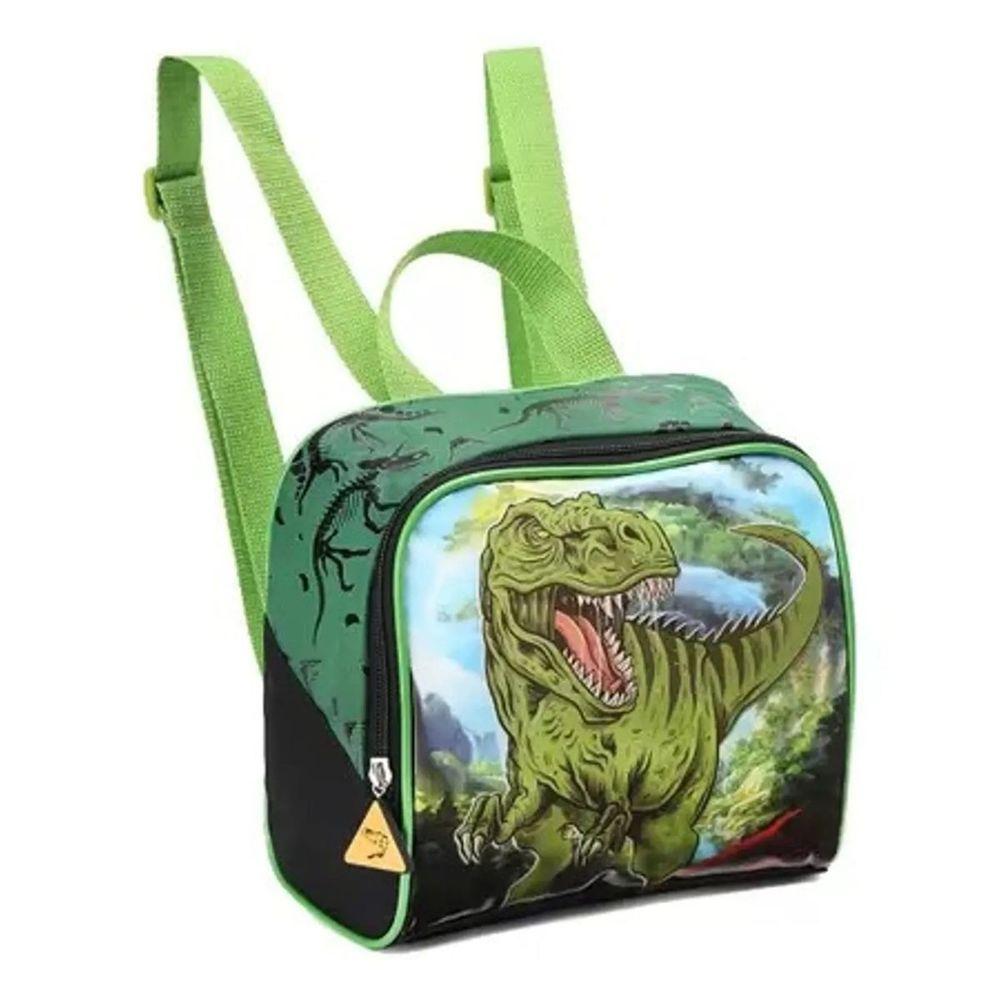 Kit Escolar Mochila Lancheira E Estojo Para Meninos Dinossauro Alça De Costas Reforçada - Trex - Denlex Verde Escuro
